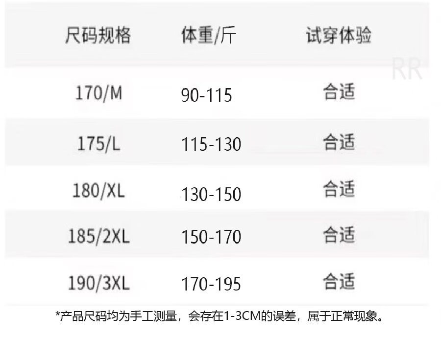China (cm) 165 / 88-90 170 / 96-98 175 / 108-110 180 / 118-122 185 / 126-130