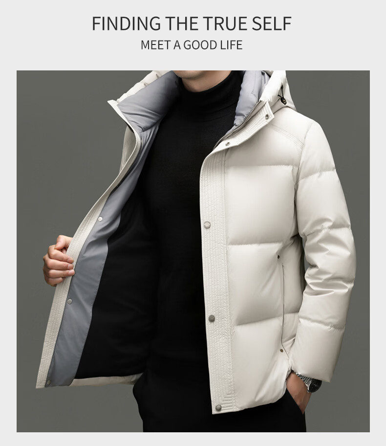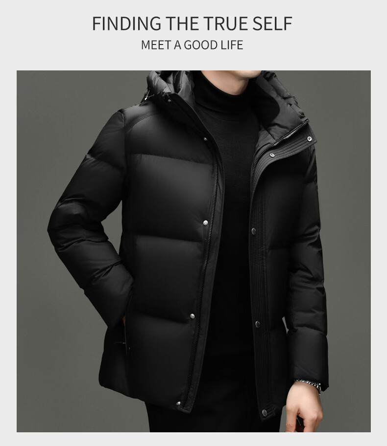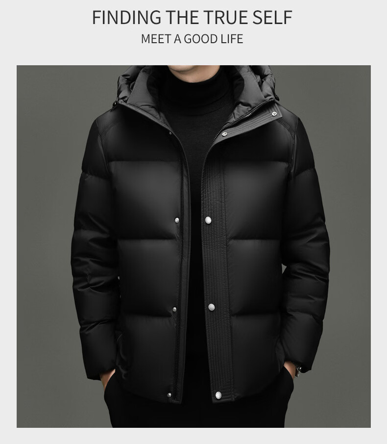 MAGIOPY светлое роскошное высококачественное брендовое мужское пальто на белом утином пуху 2026 зимнее новое стильное модное повседневное пальто для молодежи и среднего возраста с капюшоном черного цвета M 170