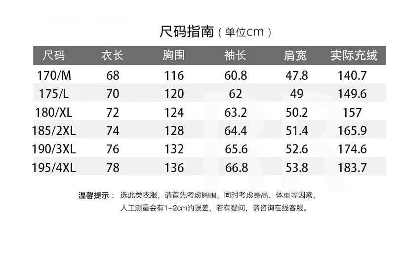 China (cm) 165 / 88-90 170 / 96-98 175 / 108-110 180 / 118-122 185 / 126-130