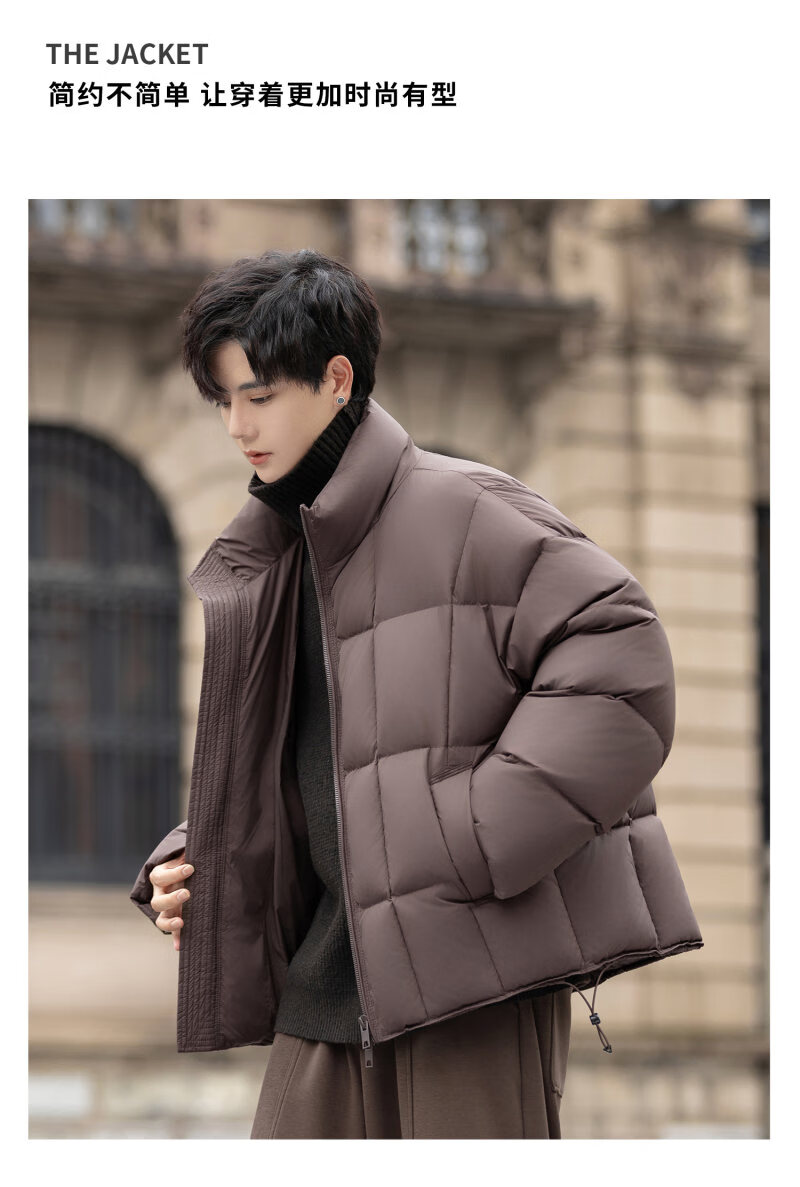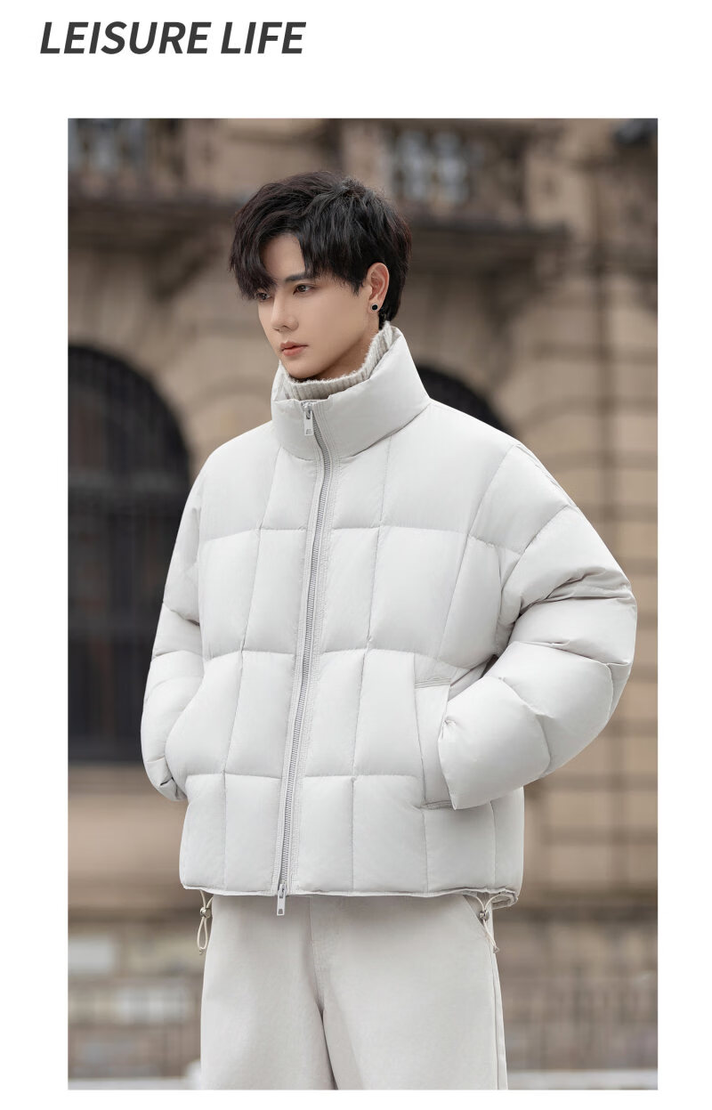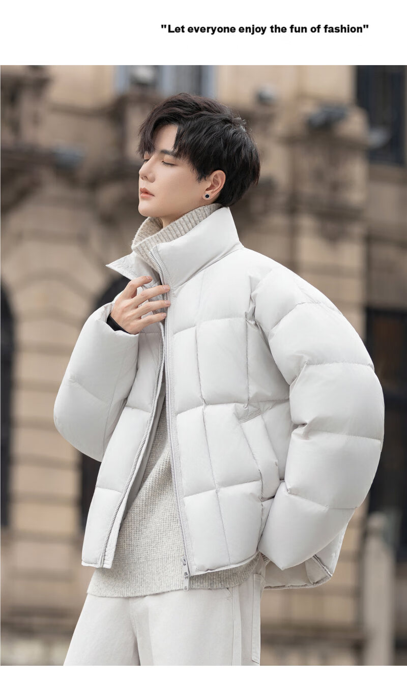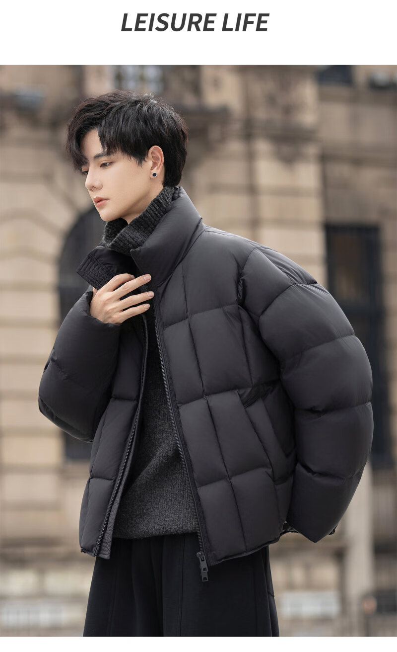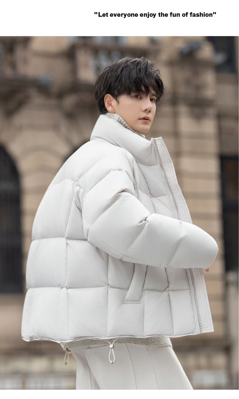 罗蒙(ROMON)200g高充绒重磅立领短款羽绒服男士冬季防风加厚保暖面包服外套潮 月光灰 M