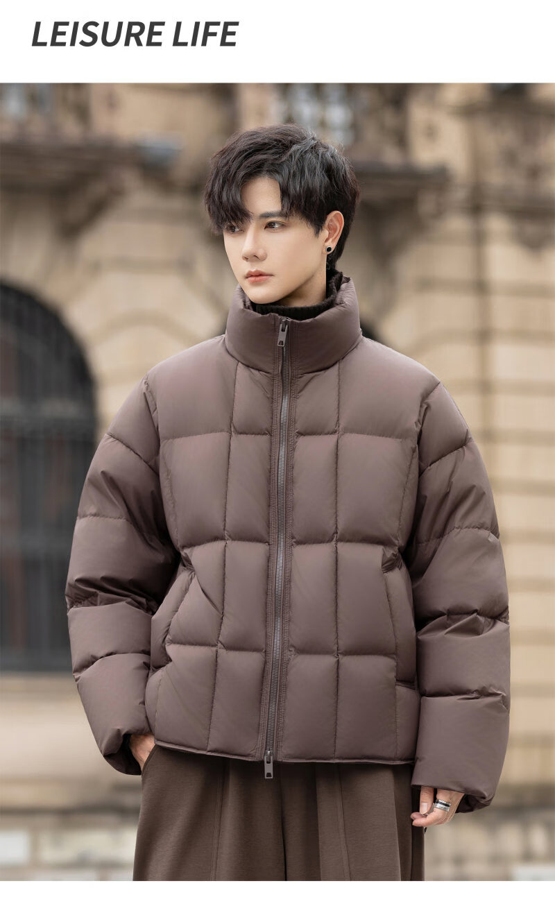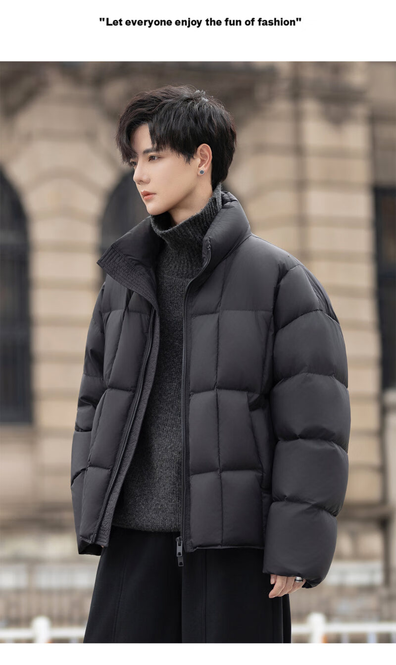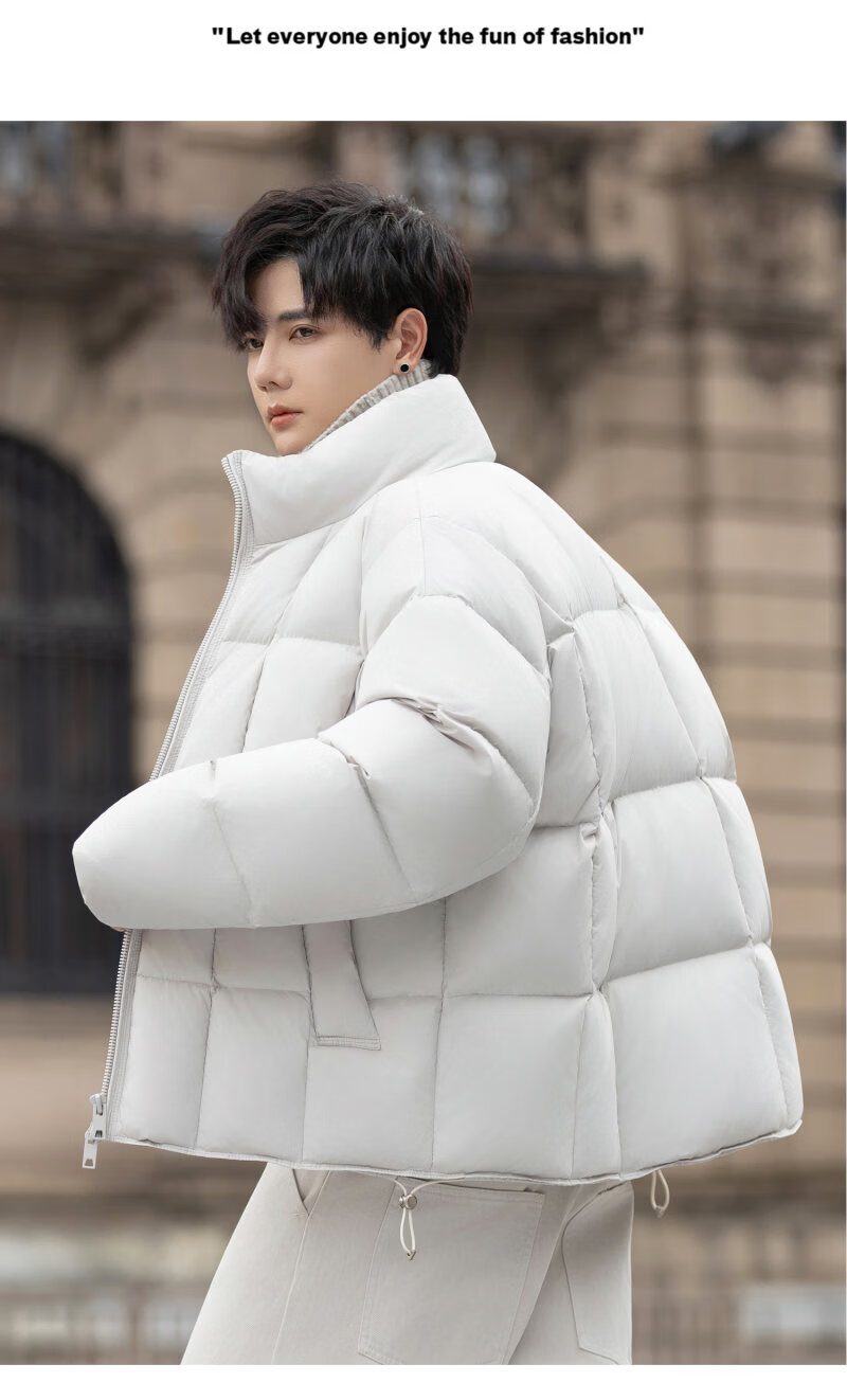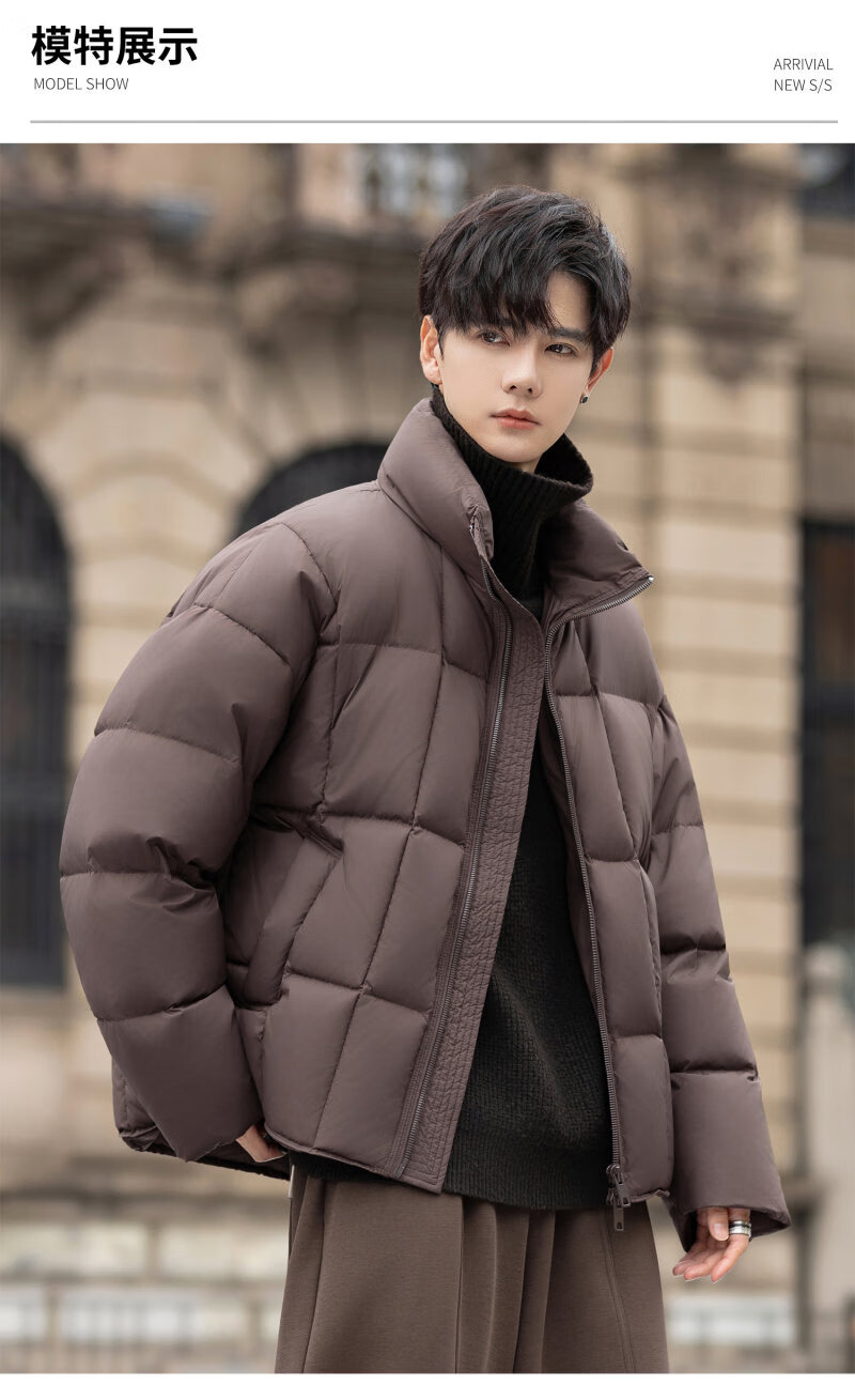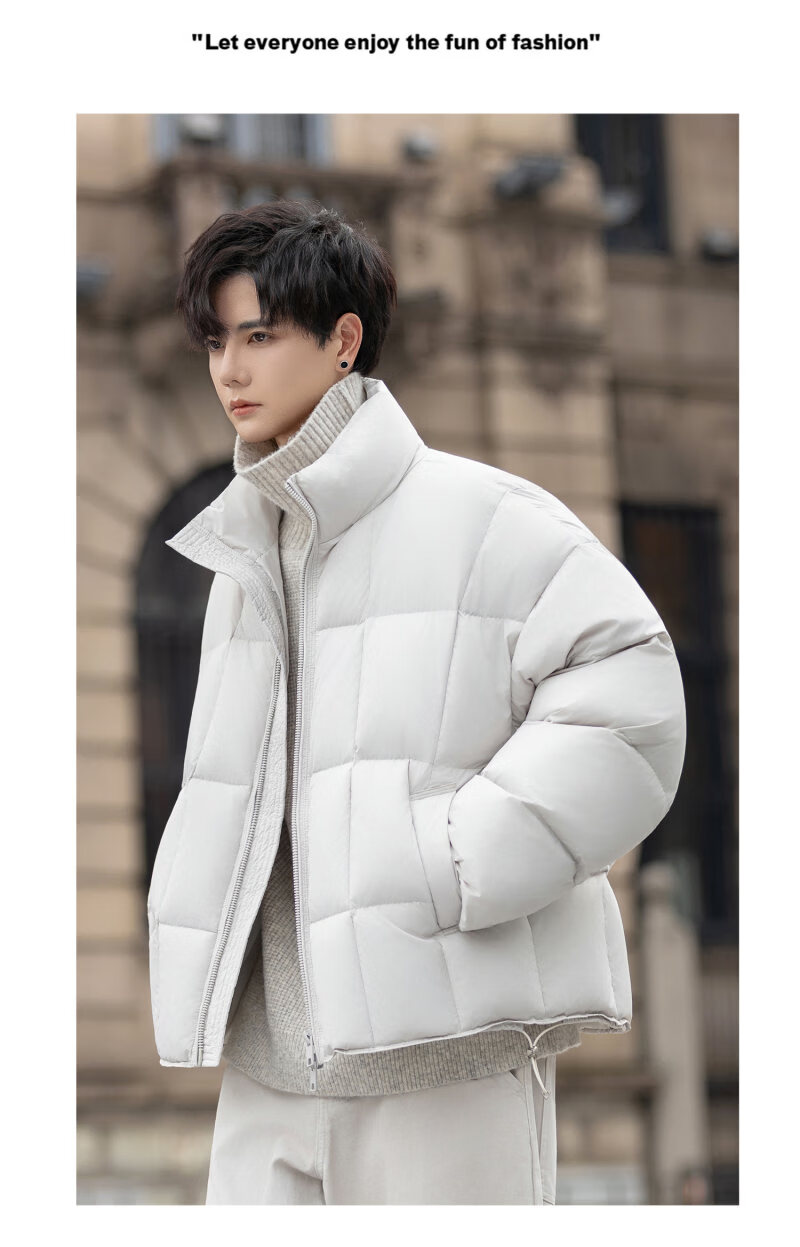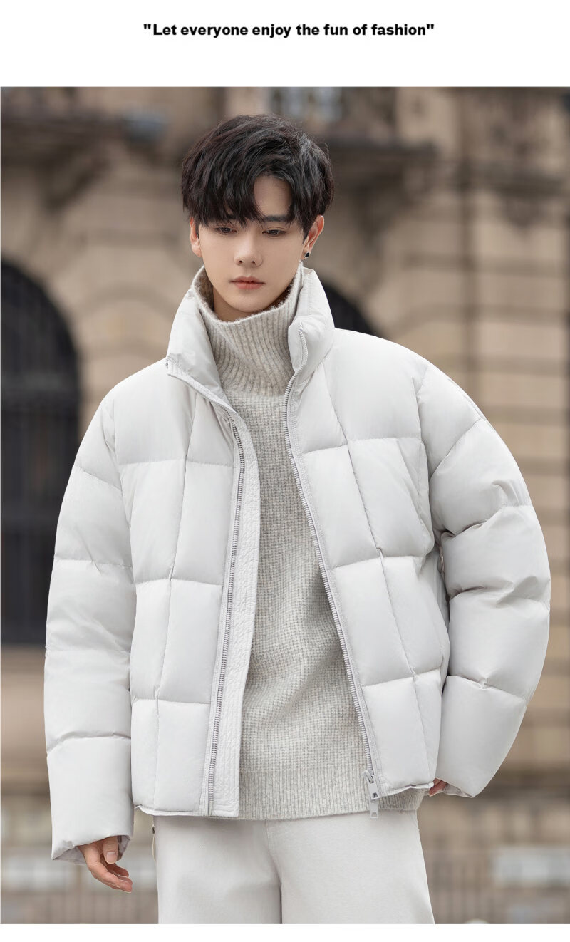 罗蒙(ROMON)200g高充绒重磅立领短款羽绒服男士冬季防风加厚保暖面包服外套潮 月光灰 M