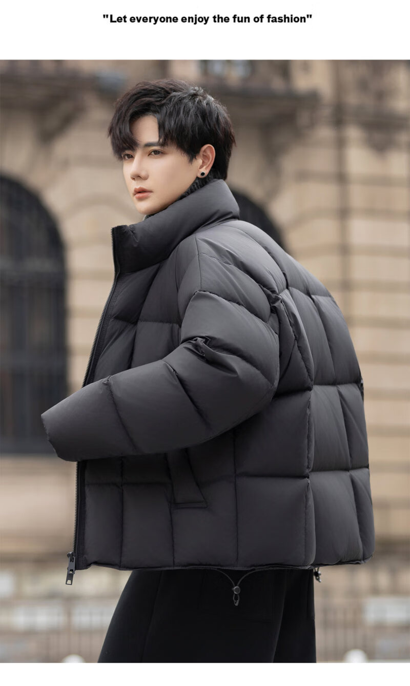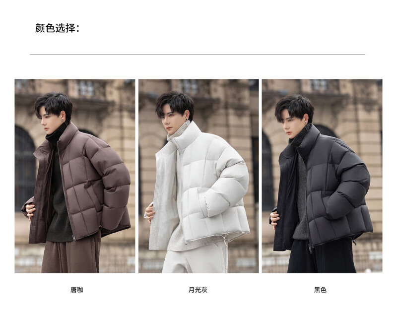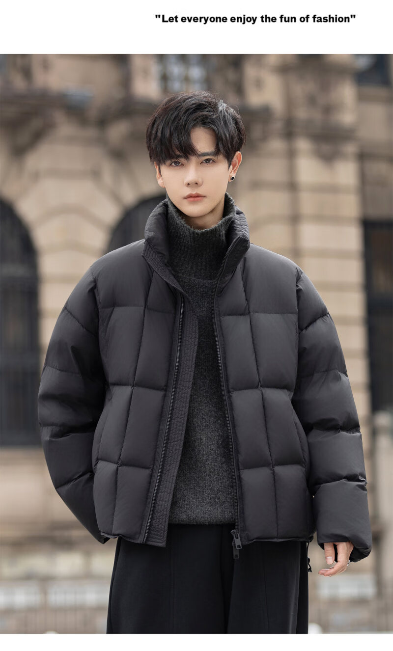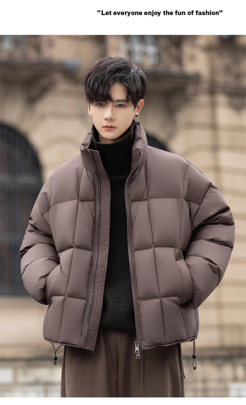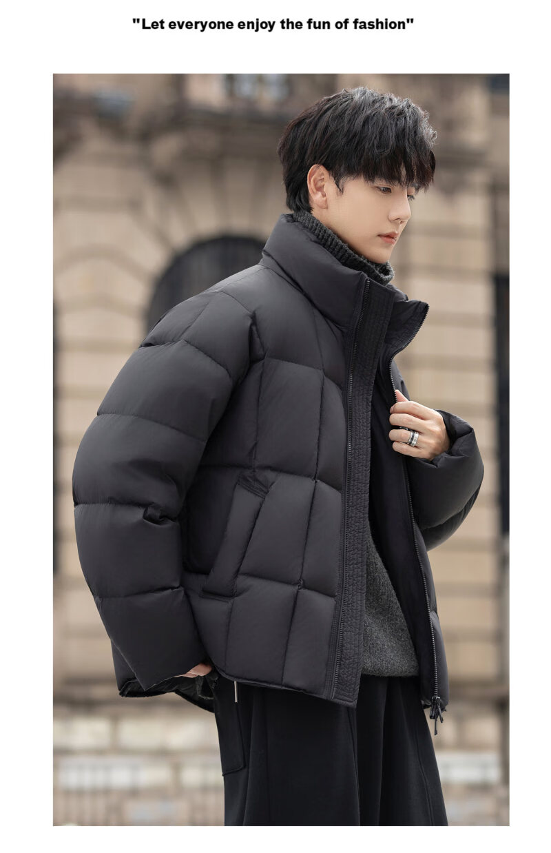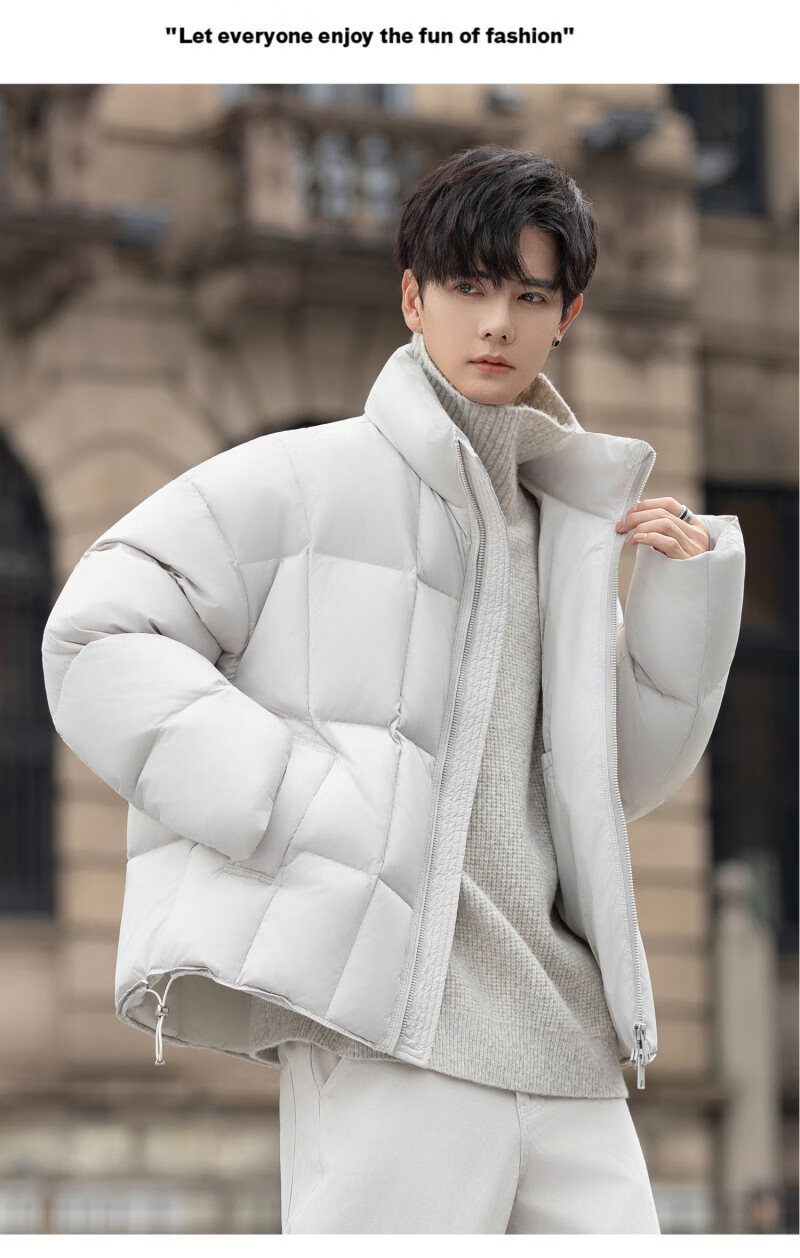 罗蒙(ROMON)200g高充绒重磅立领短款羽绒服男士冬季防风加厚保暖面包服外套潮 月光灰 M