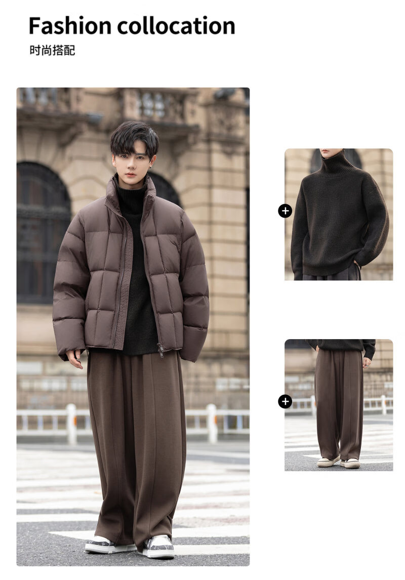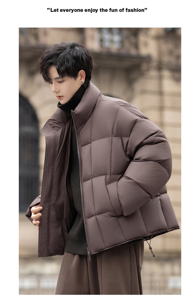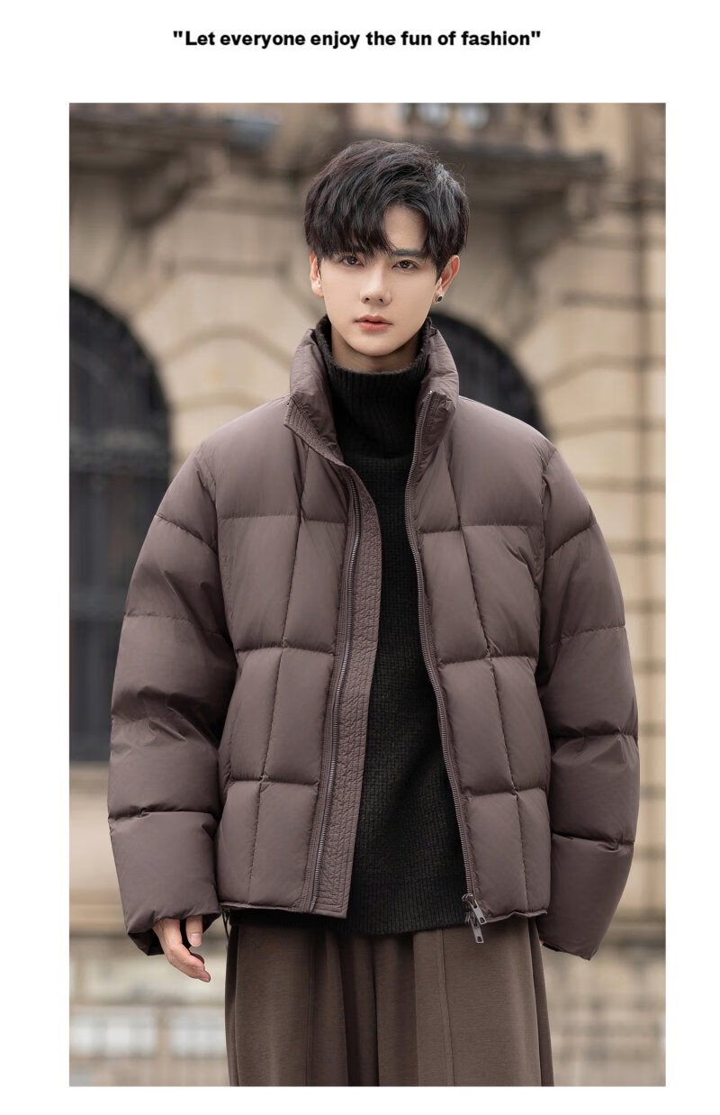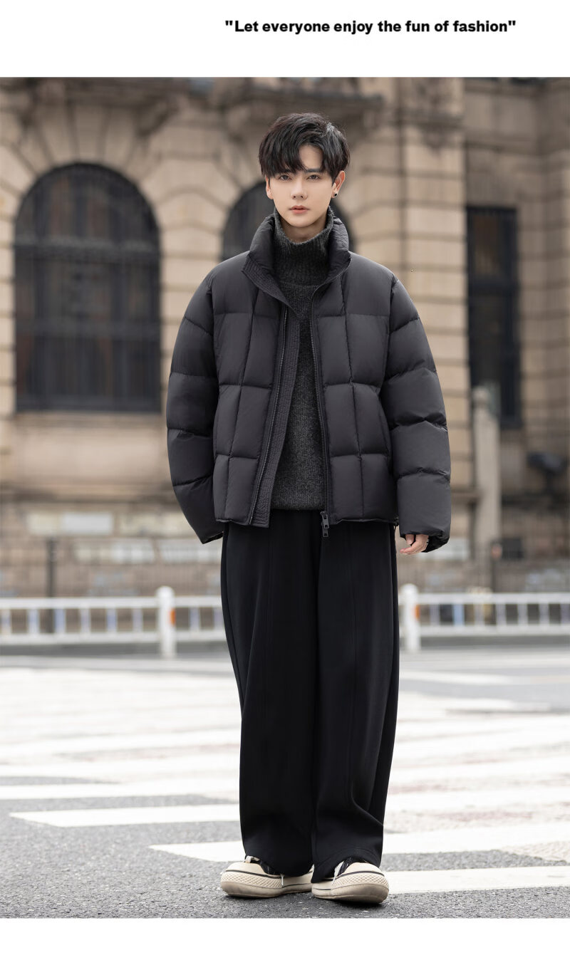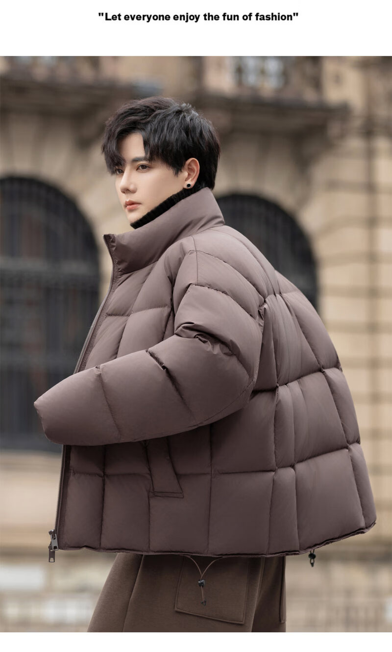 罗蒙(ROMON)200g高充绒重磅立领短款羽绒服男士冬季防风加厚保暖面包服外套潮 月光灰 M