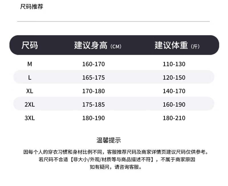 China (cm) 165 / 88-90 170 / 96-98 175 / 108-110 180 / 118-122 185 / 126-130