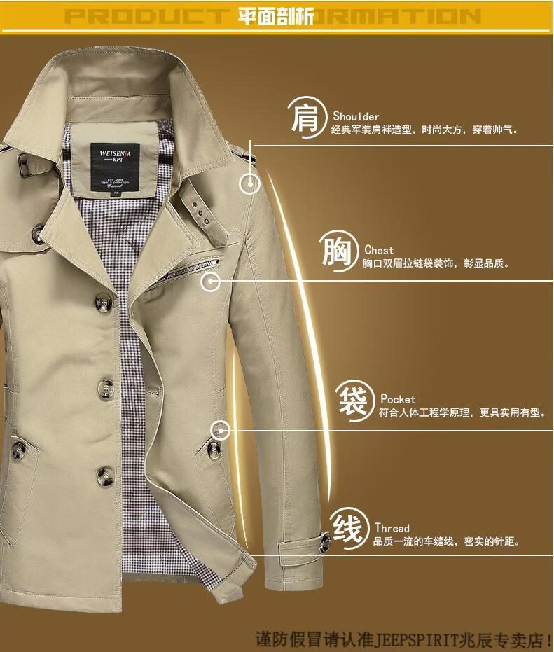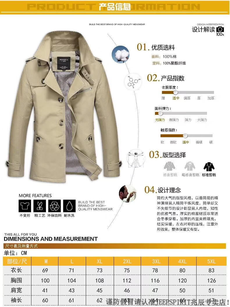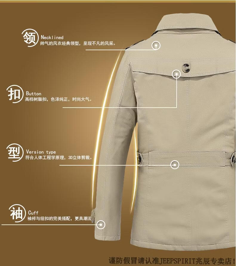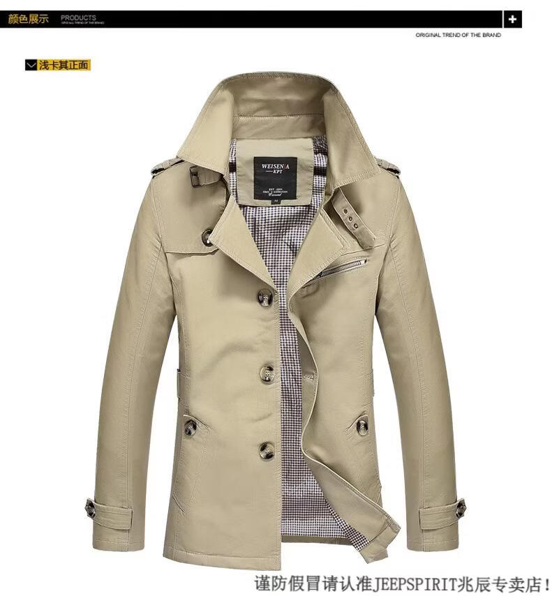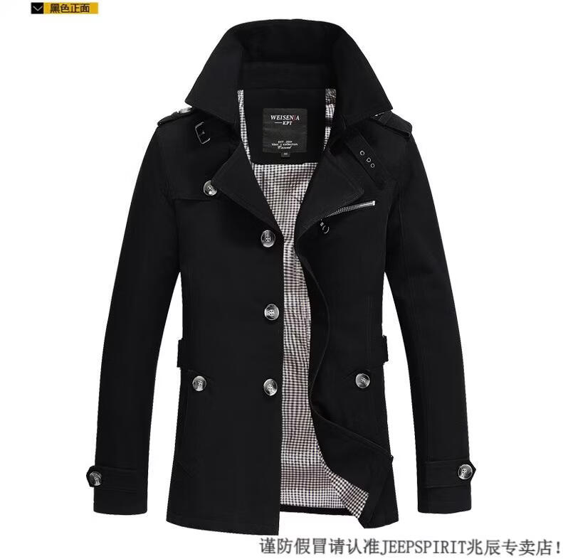 JEEP SPIRIT休闲男士工作外套纯棉风衣2026春秋季男装新款男式夹克 黑色 M