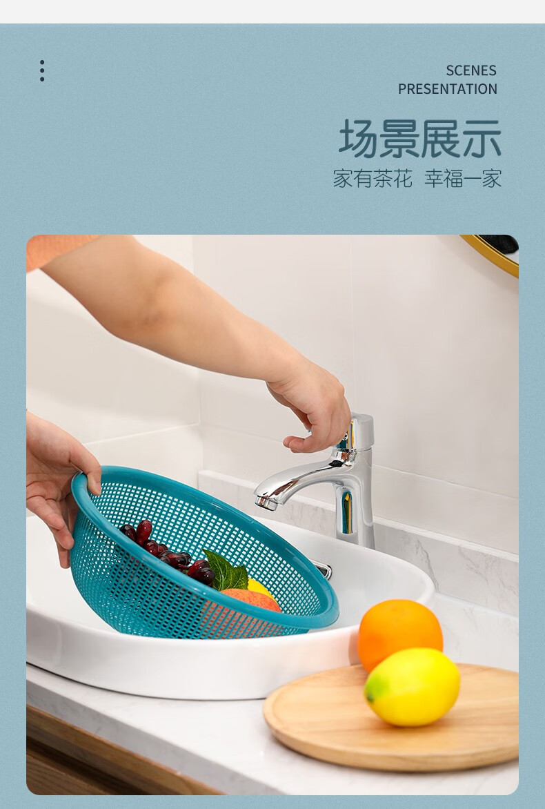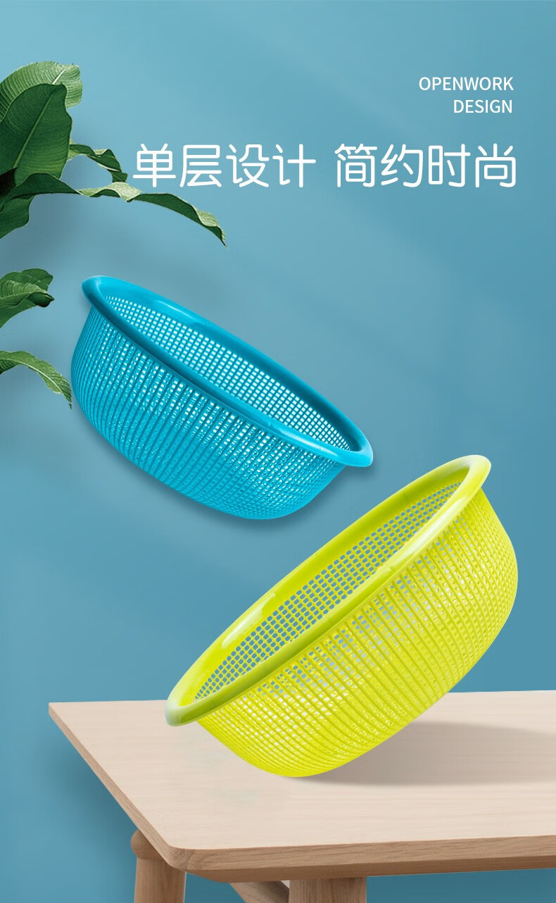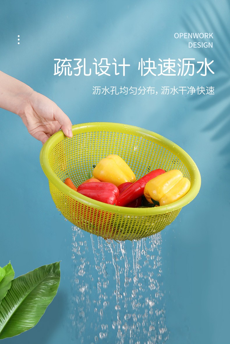 茶花茶花洗菜篮子沥水篮塑料加厚滤水筛厨房客厅水果篮洗菜篮 绿色 直径30CM