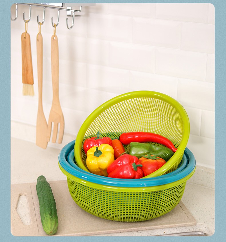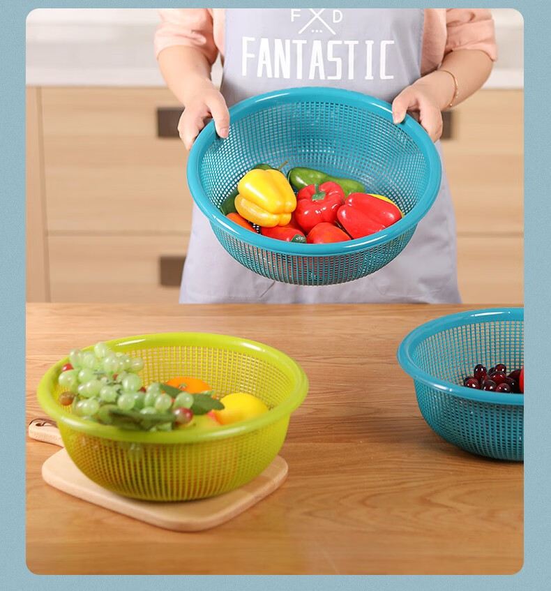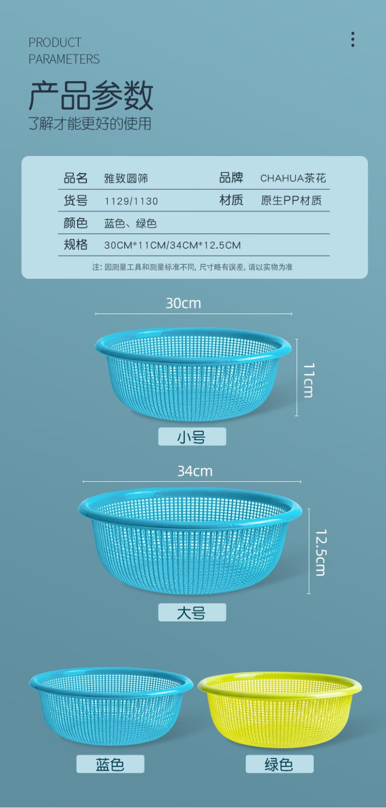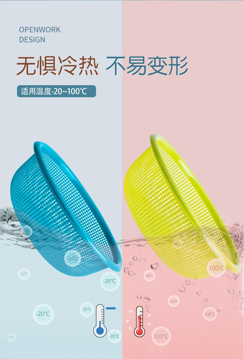 茶花茶花洗菜篮子沥水篮塑料加厚滤水筛厨房客厅水果篮洗菜篮 绿色 直径30CM