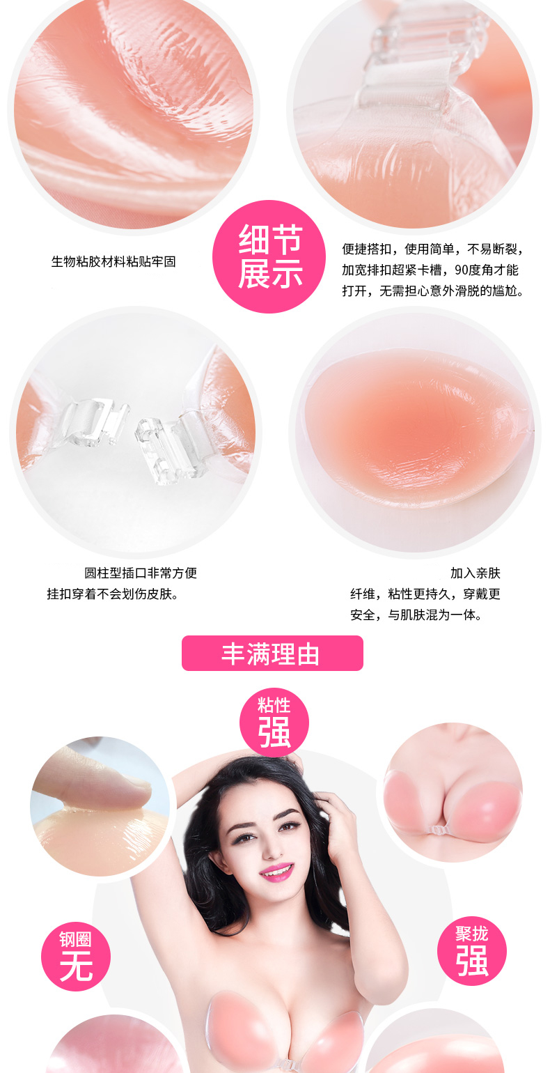 叶兹硅胶胸贴女婚纱用拍照专用小胸显大胸乳贴聚拢上托隐形文胸厚内衣 隐形胸罩 C杯