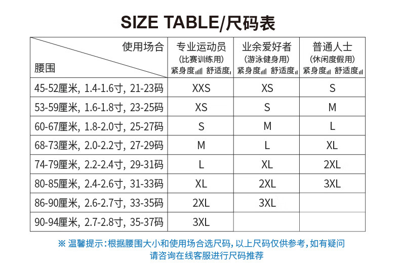USA(inch) 28-30 30-32 32-34 34-38 38-42
