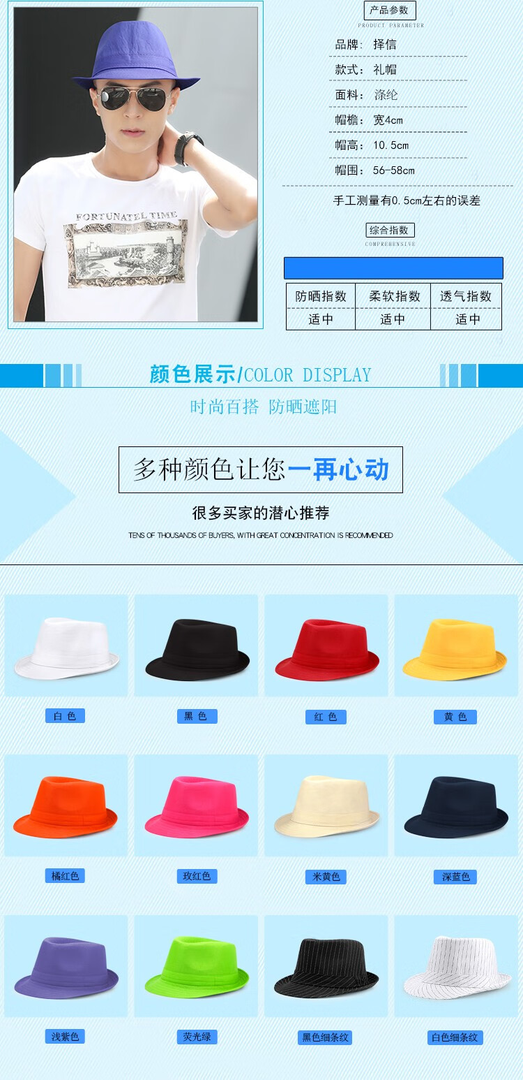 择信礼帽男春夏季男女通用简约复古英伦爵士大码纯色绅士帽舞台表演 黑色 均码适合57cm左右头围