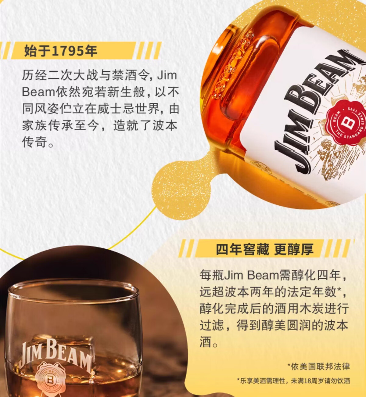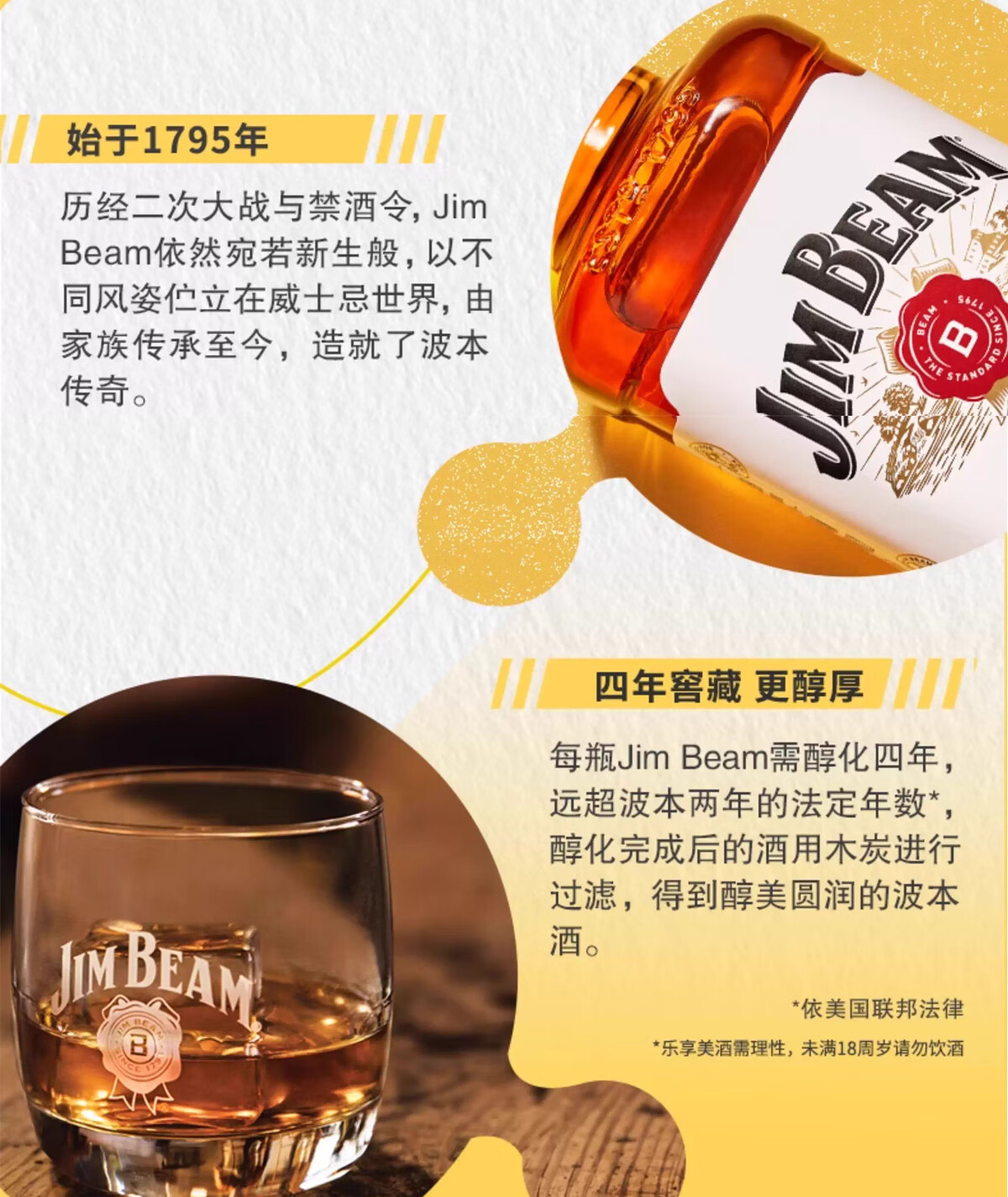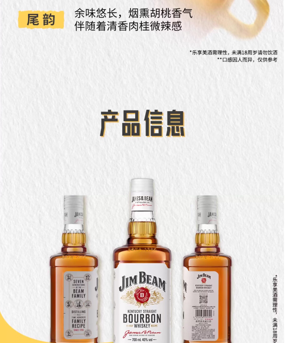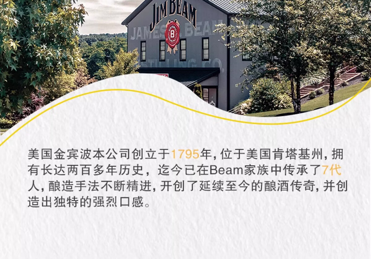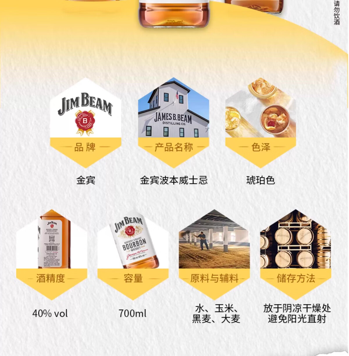 金宾(Jim Beam)郎家园洋酒金宾白占边美国波本威士忌酒700ml
