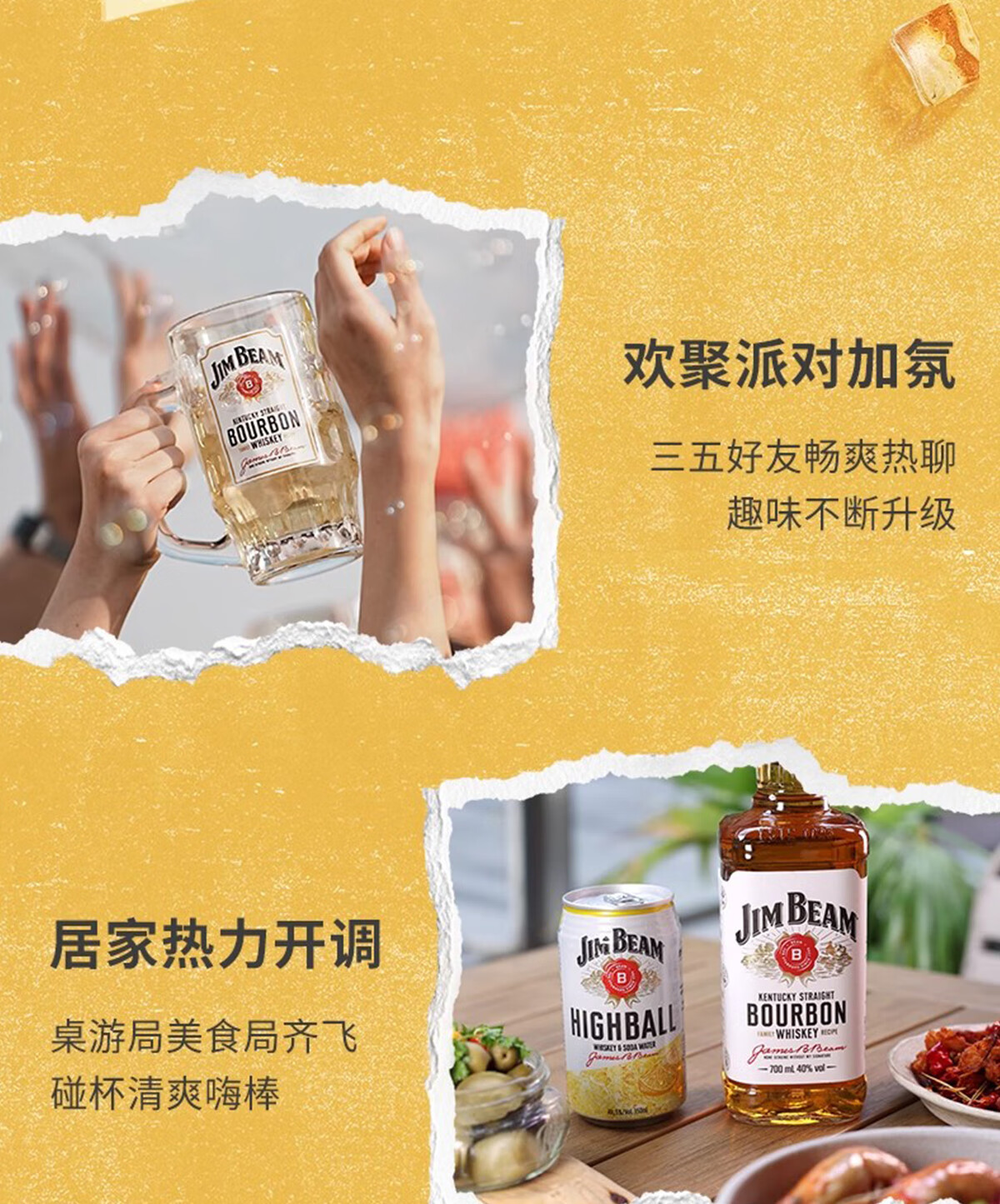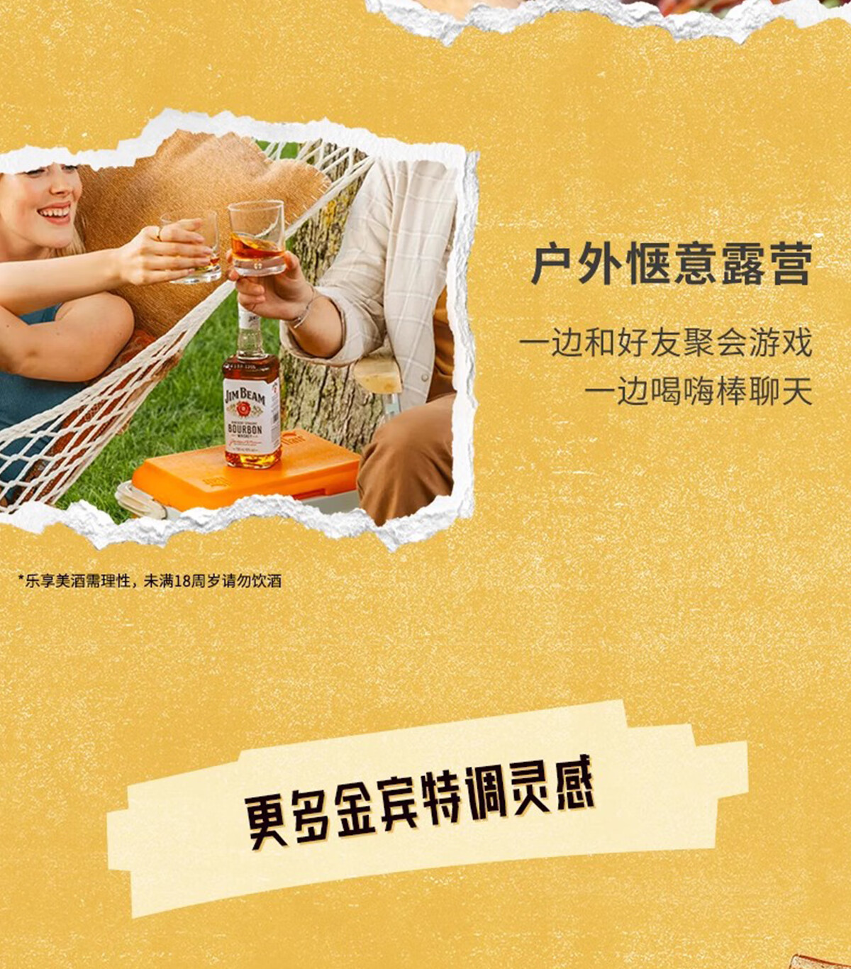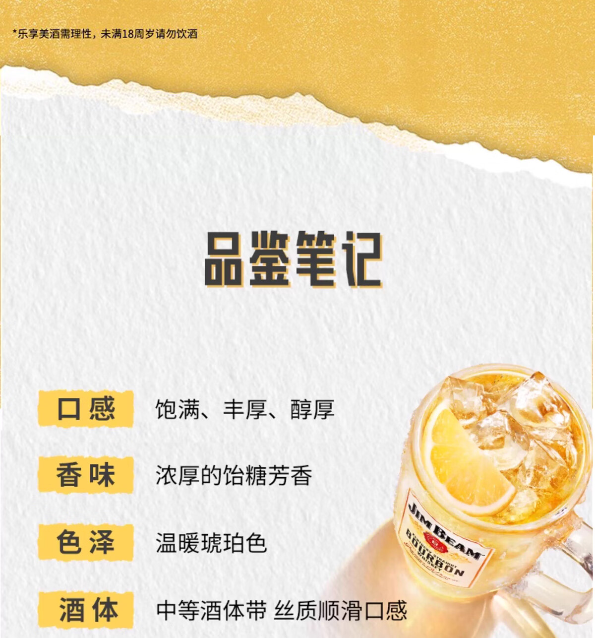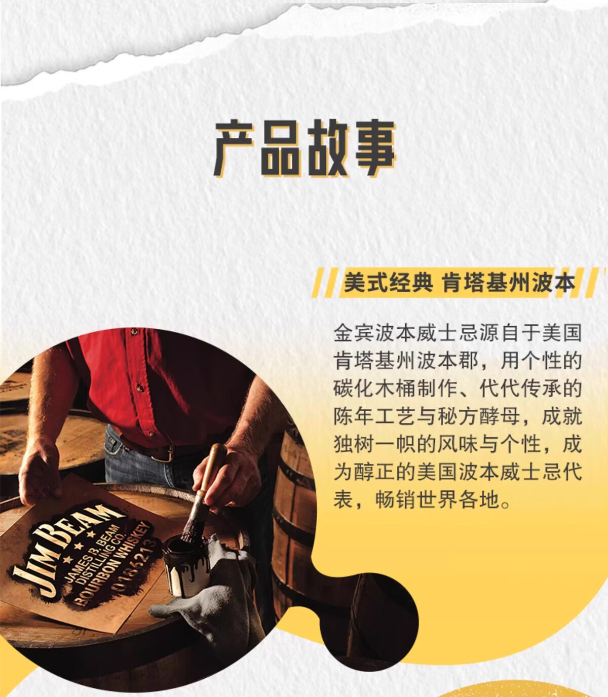 金宾(Jim Beam)郎家园洋酒金宾白占边美国波本威士忌酒700ml