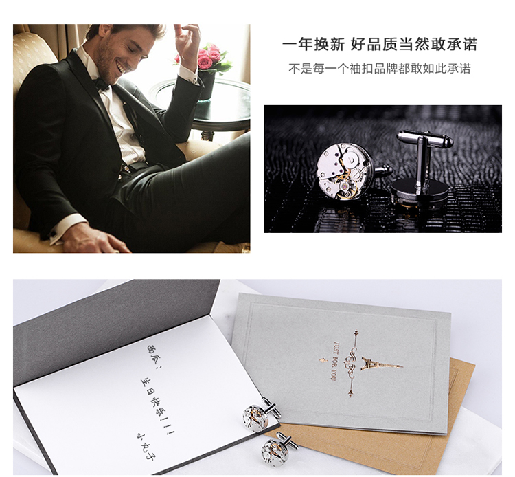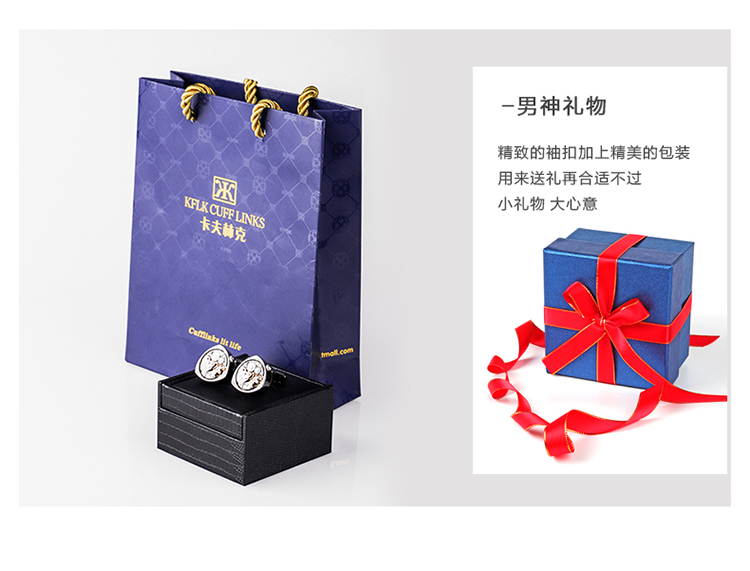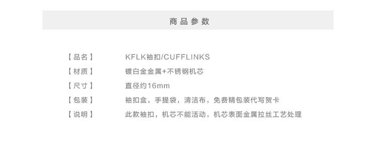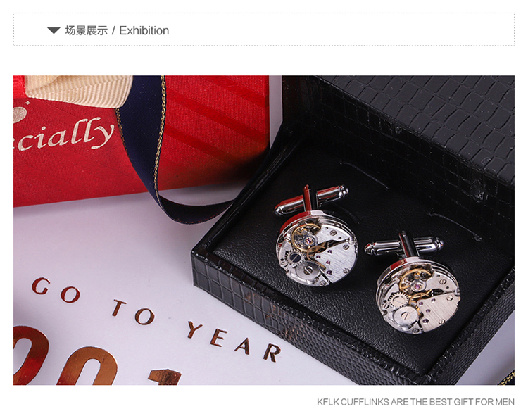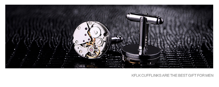 KFLK机械衬衫男士袖扣法式袖口扣袖钉机芯轻奢衬衣 刻字定制 Cfflinks 银色