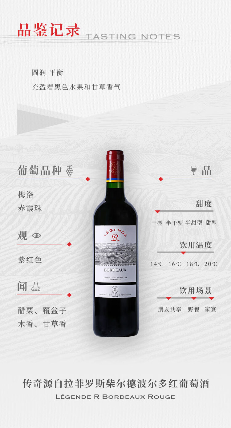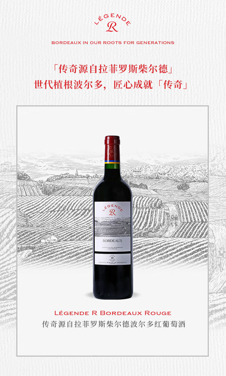 拉菲(LAFITE)传奇波尔多 赤霞珠干红葡萄酒 750ml*6 红酒整箱装 热门商品