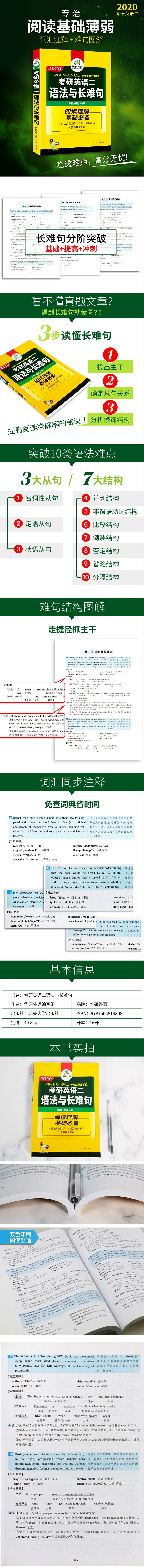华研外语 考研英语二语法与长难句 2020考研英语二阅读理解基础标配