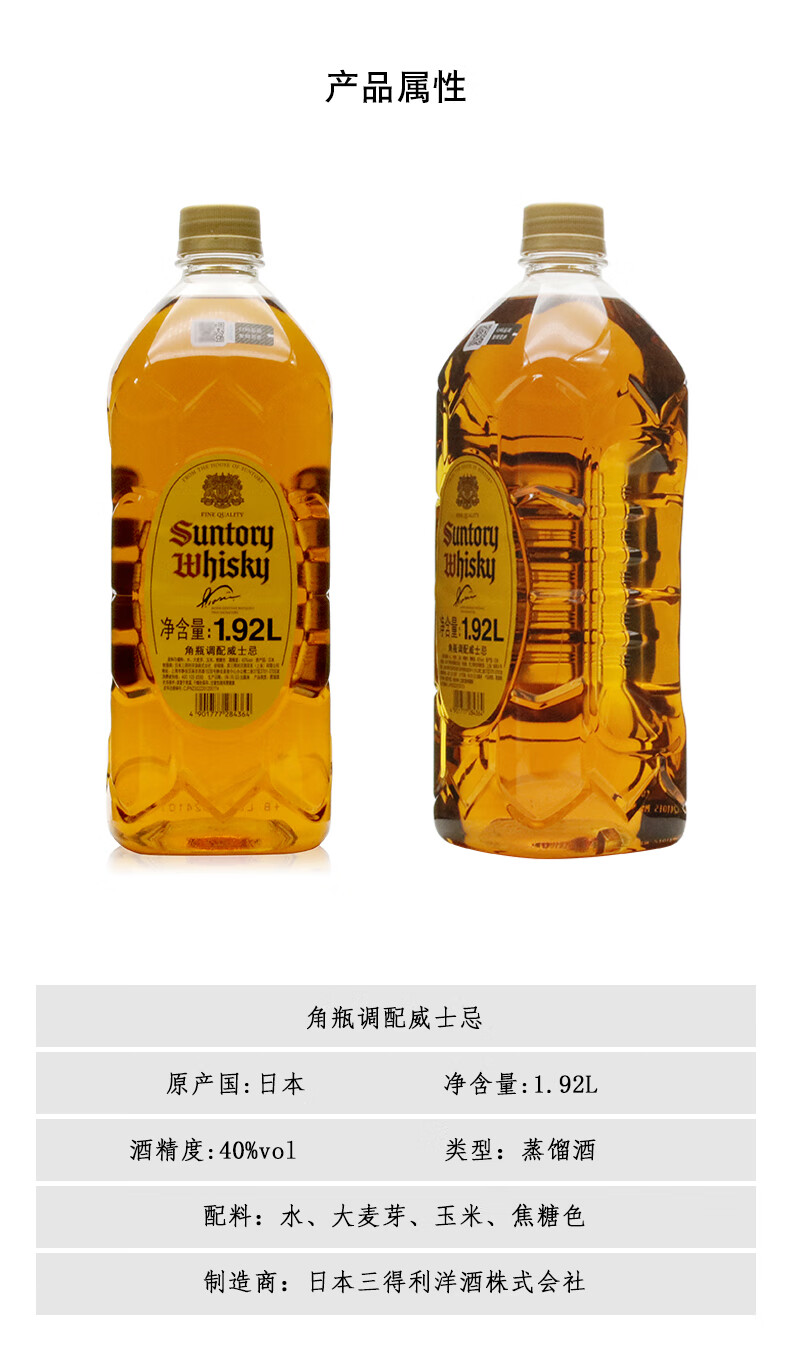 三得利(Suntory)洋酒 日本原装进口 三得利调配威士忌 塑料瓶 三得利威士忌[角瓶]1.92L