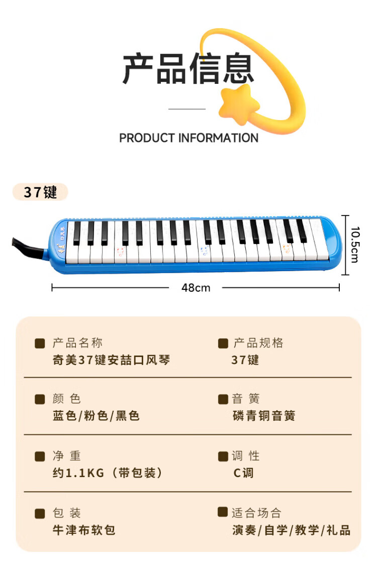 Chimei Recomendación de enseñanza de 37 teclas Bolsa suave de lona Órgano bucal Anzhe (Rosa, con instrucciones de juego)