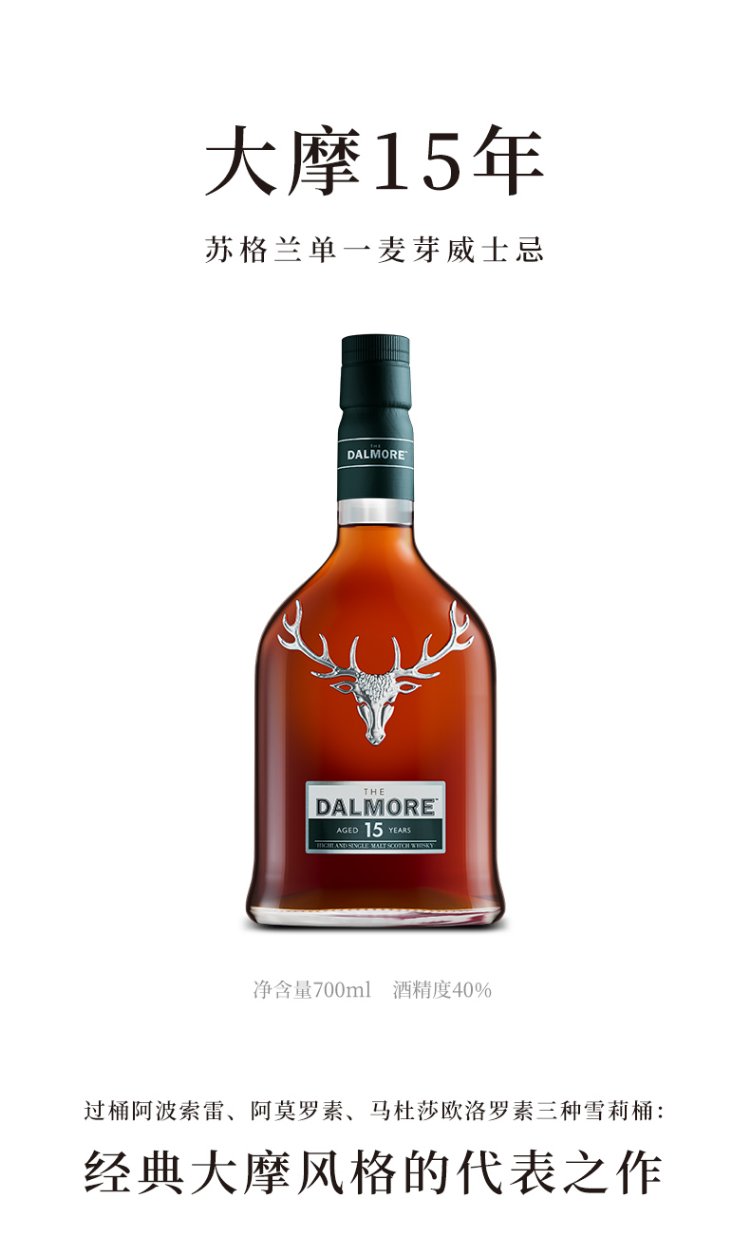 大摩(DALMORE) 15年 苏格兰单一麦芽威士忌 700ml