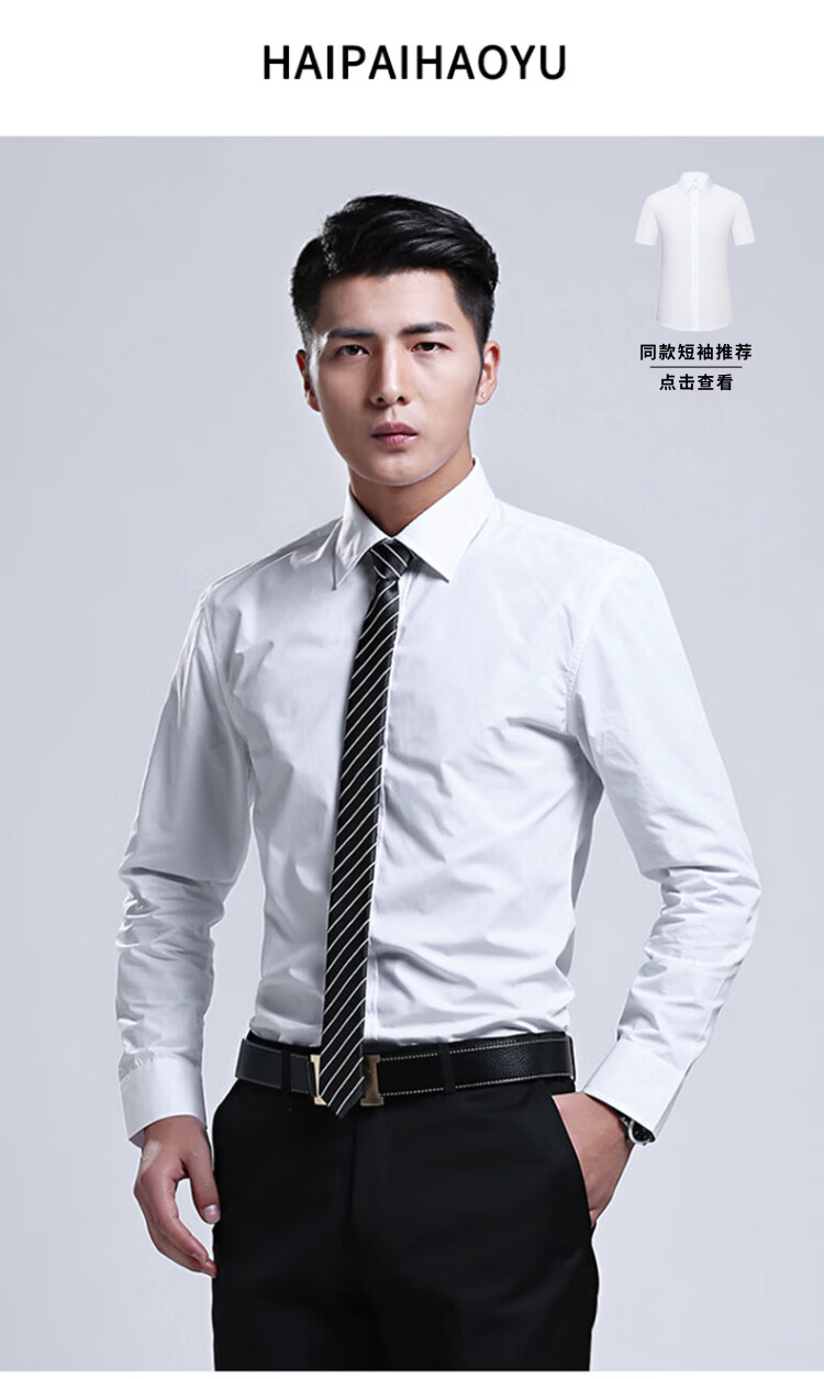Haipai Haoyu long-sleeved shirt men's slim business formal shirt no ironing professional wear solid color men's wedding texture white top CS3012 white XL (175) 126-135Jin Jin equals 0.5 kg