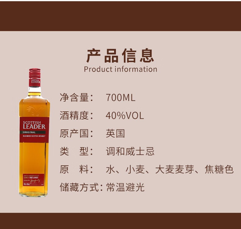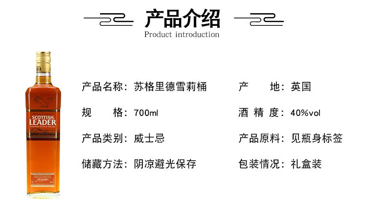 苏格里德洋酒 Scottish Leader 苏格里德苏格兰威士忌调配型苏格兰威士忌  经典700ml