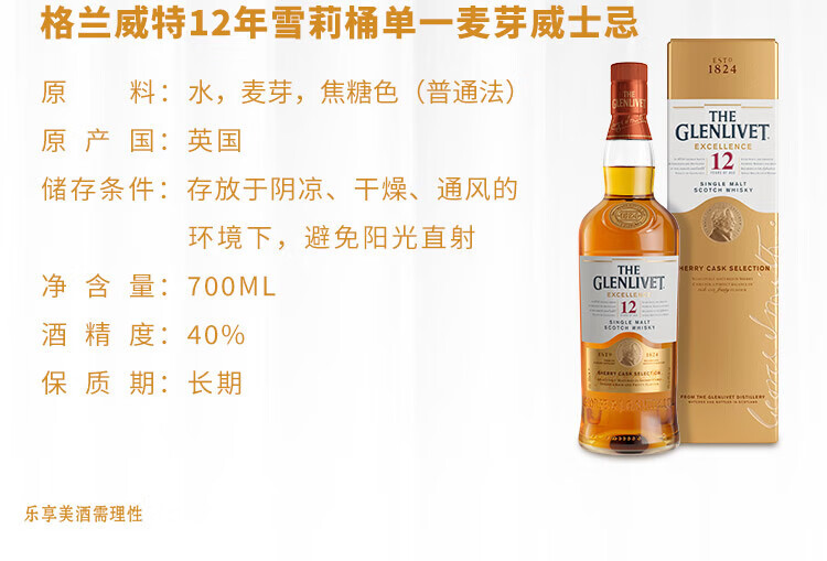 The Glenlivet (THE GLENLIVET) 12 years old Scottish single malt whiskey wine 700ml sherry barrel
