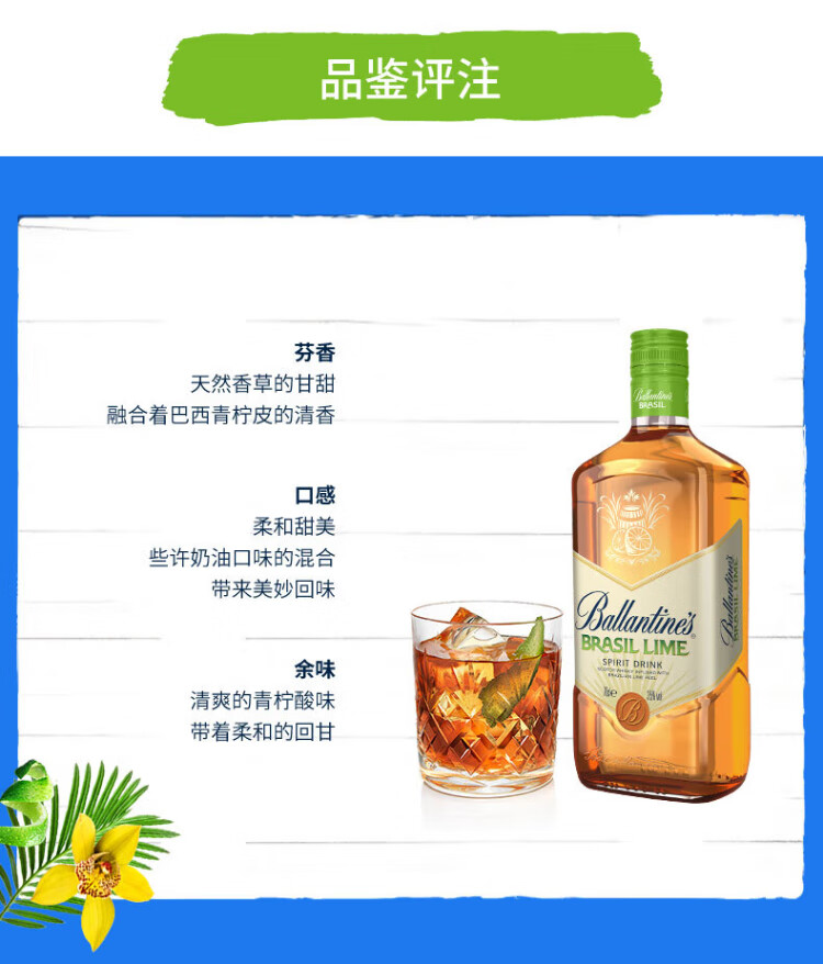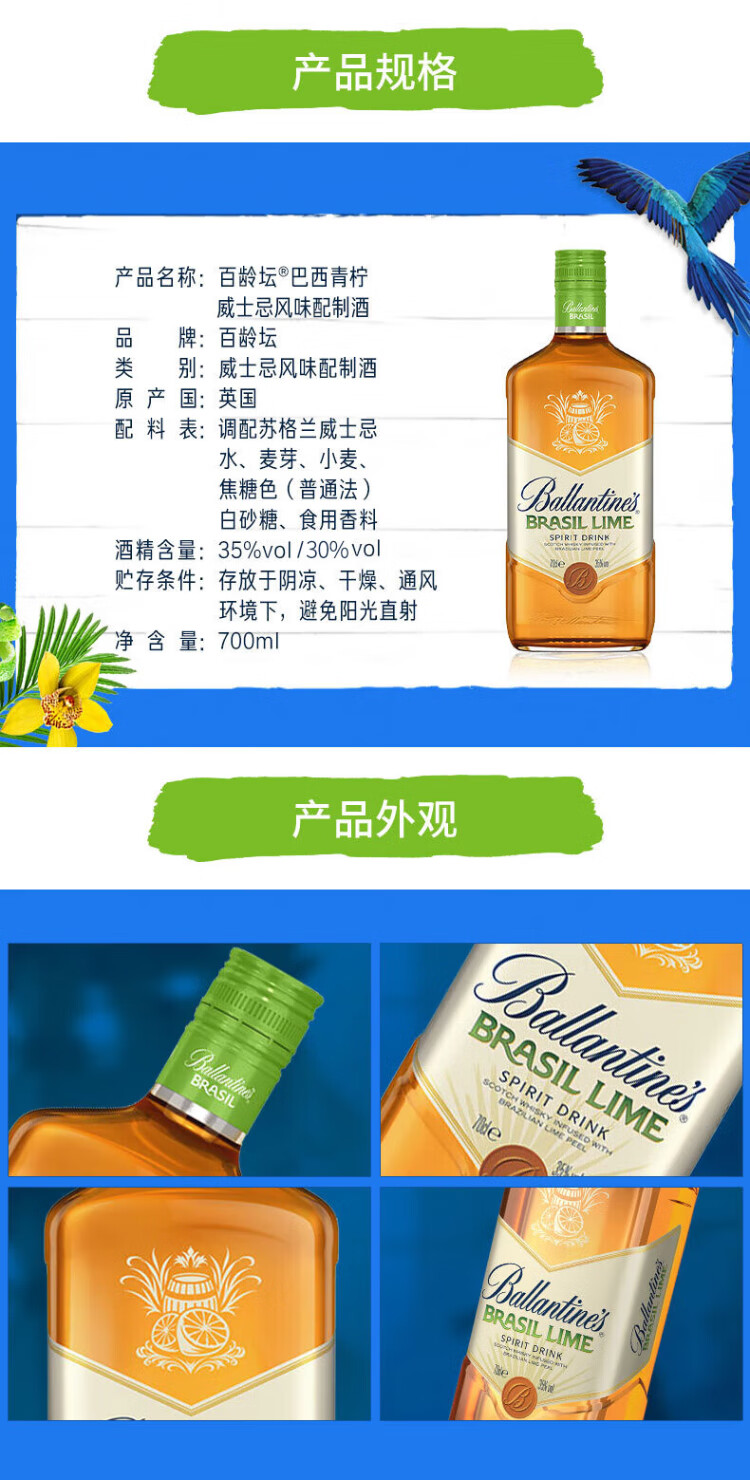 百龄坛(Ballantine`s)苏格兰 调和型威士忌洋酒 700ml 巴西青柠风味配制酒