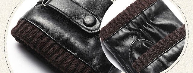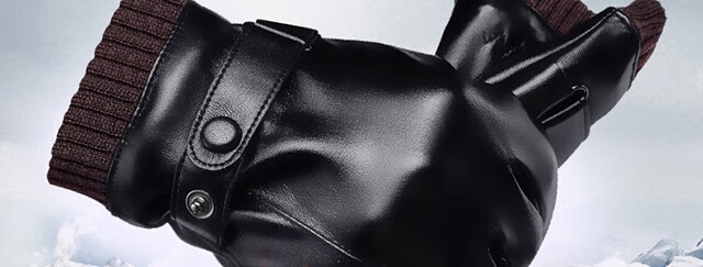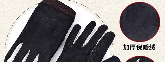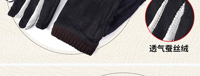 Woodpecker leather gloves men's winter riding plus velvet touch screen driving outdoor motorcycle windproof and warm takeaway cotton ski gloves three-line style plus velvet windproof and water-repellent