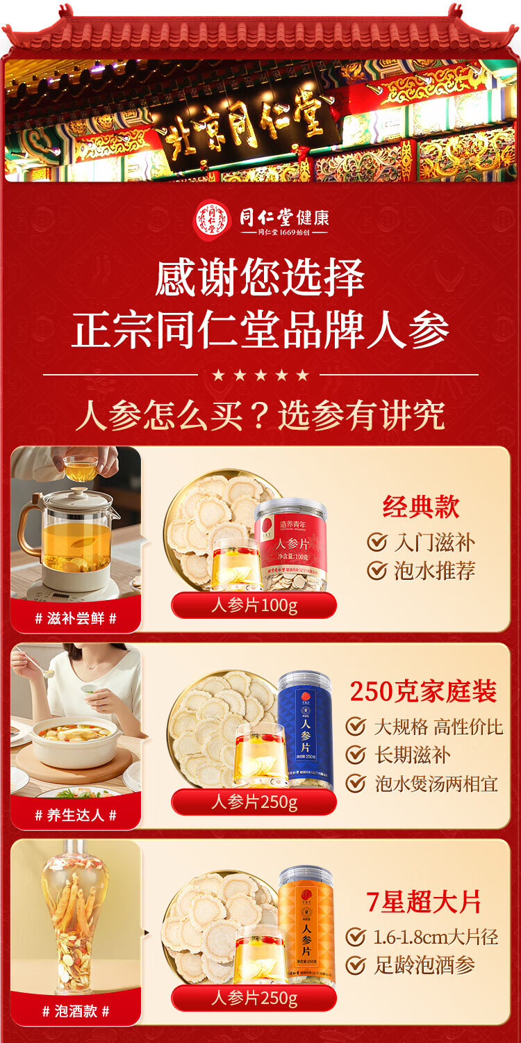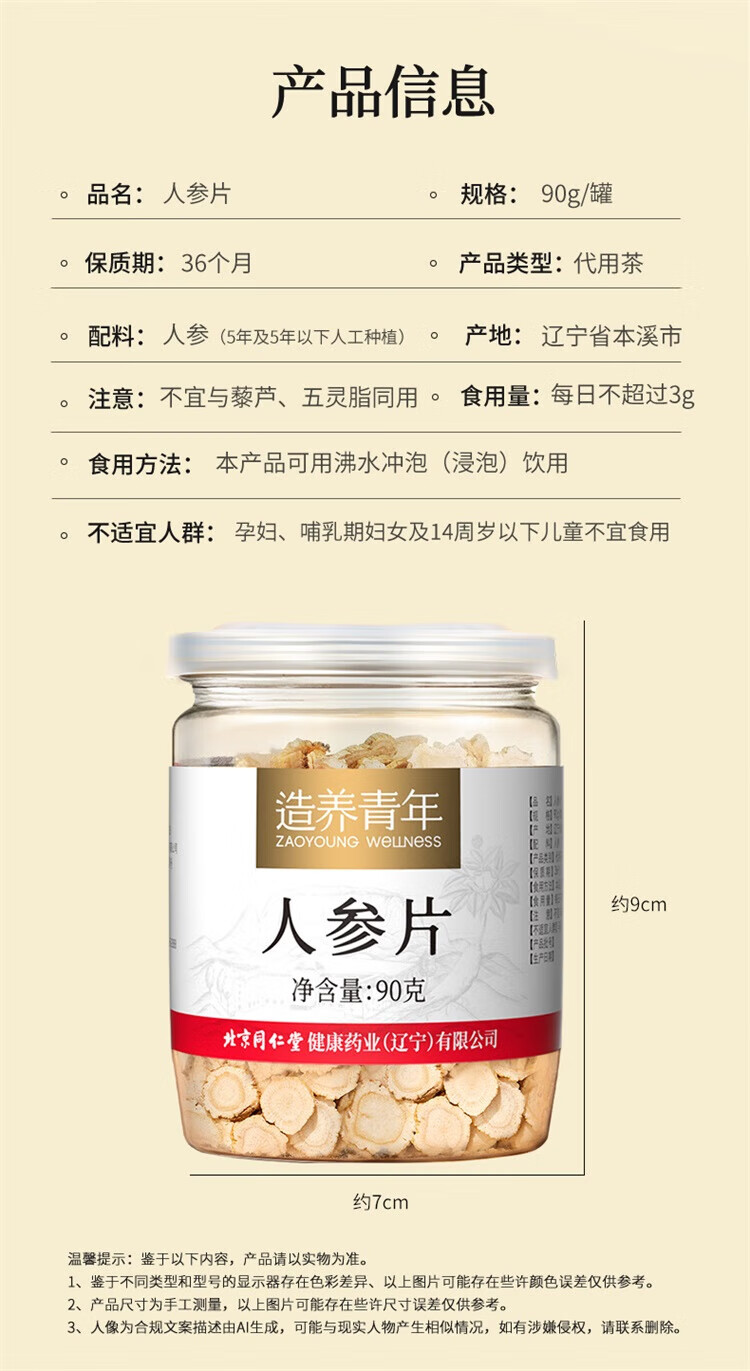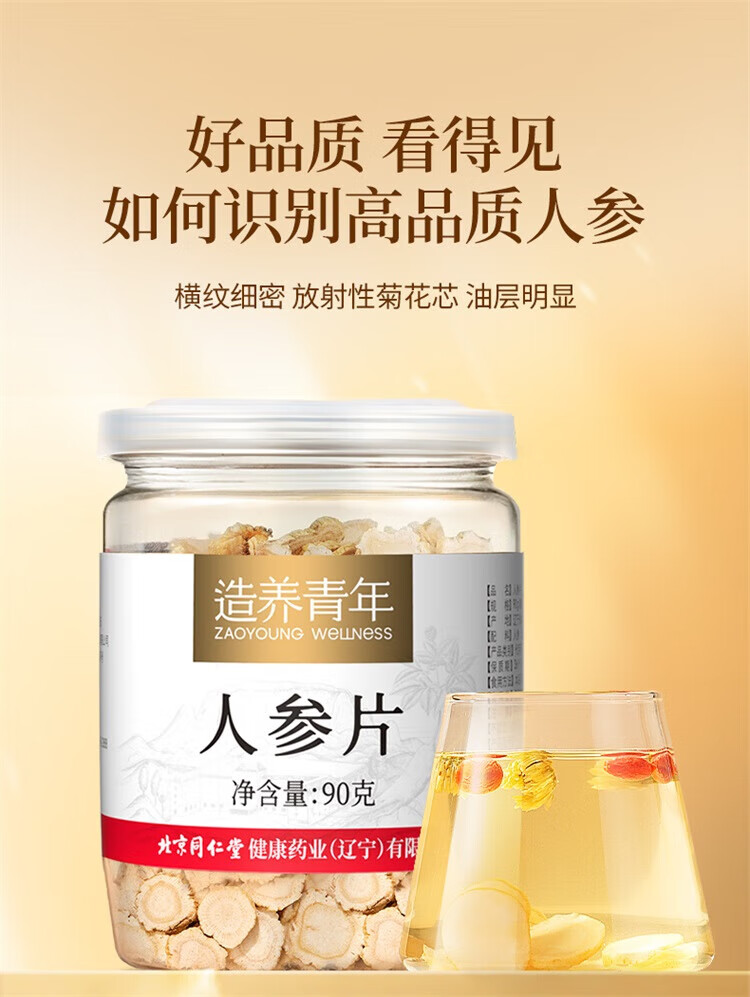 Tongrentang Marke Beijing Tongrentang Ginsengscheiben 90g Changbai Mountain getränkter Wein, nicht medizinisches, in Scheiben geschnittenes Gesundheitstonikum für Eltern