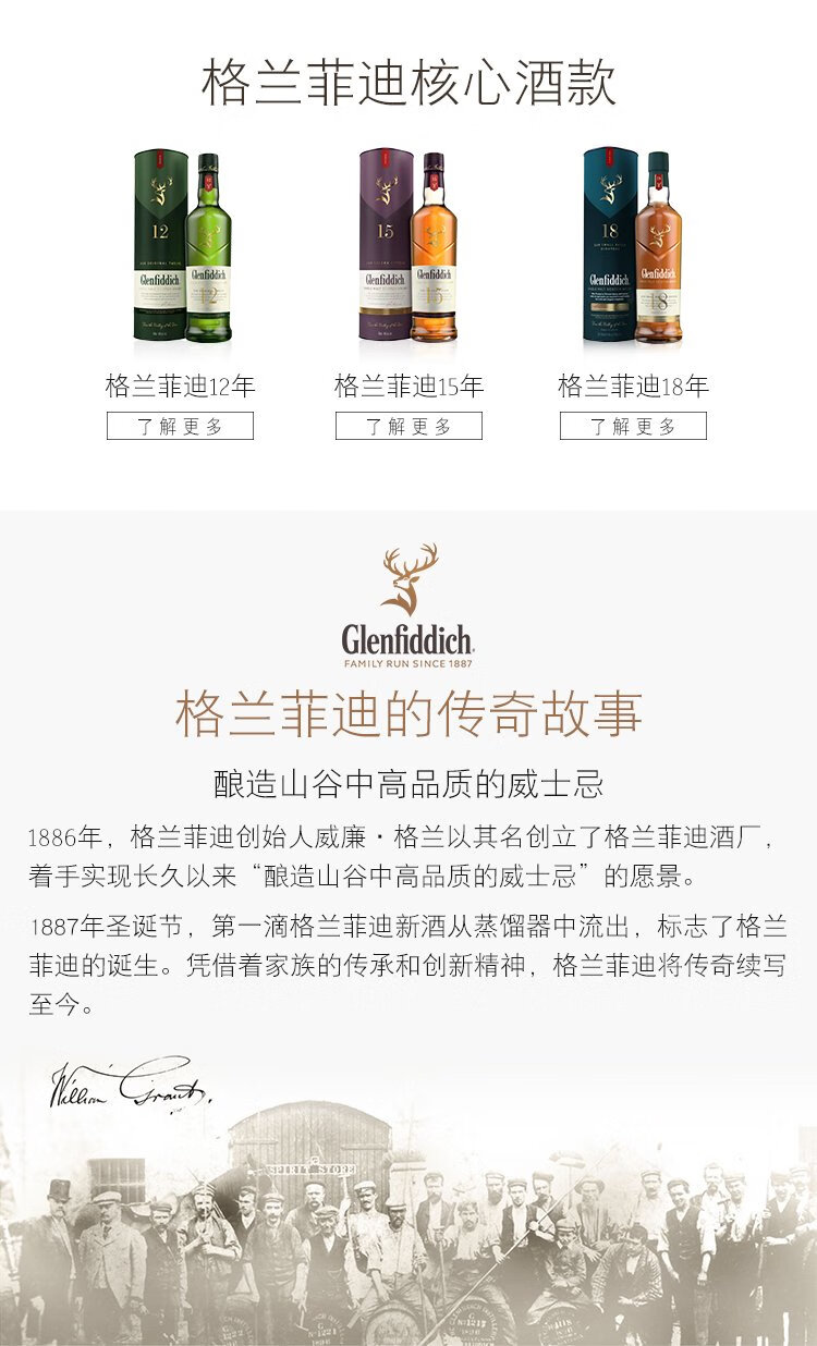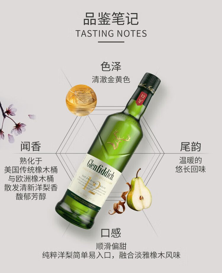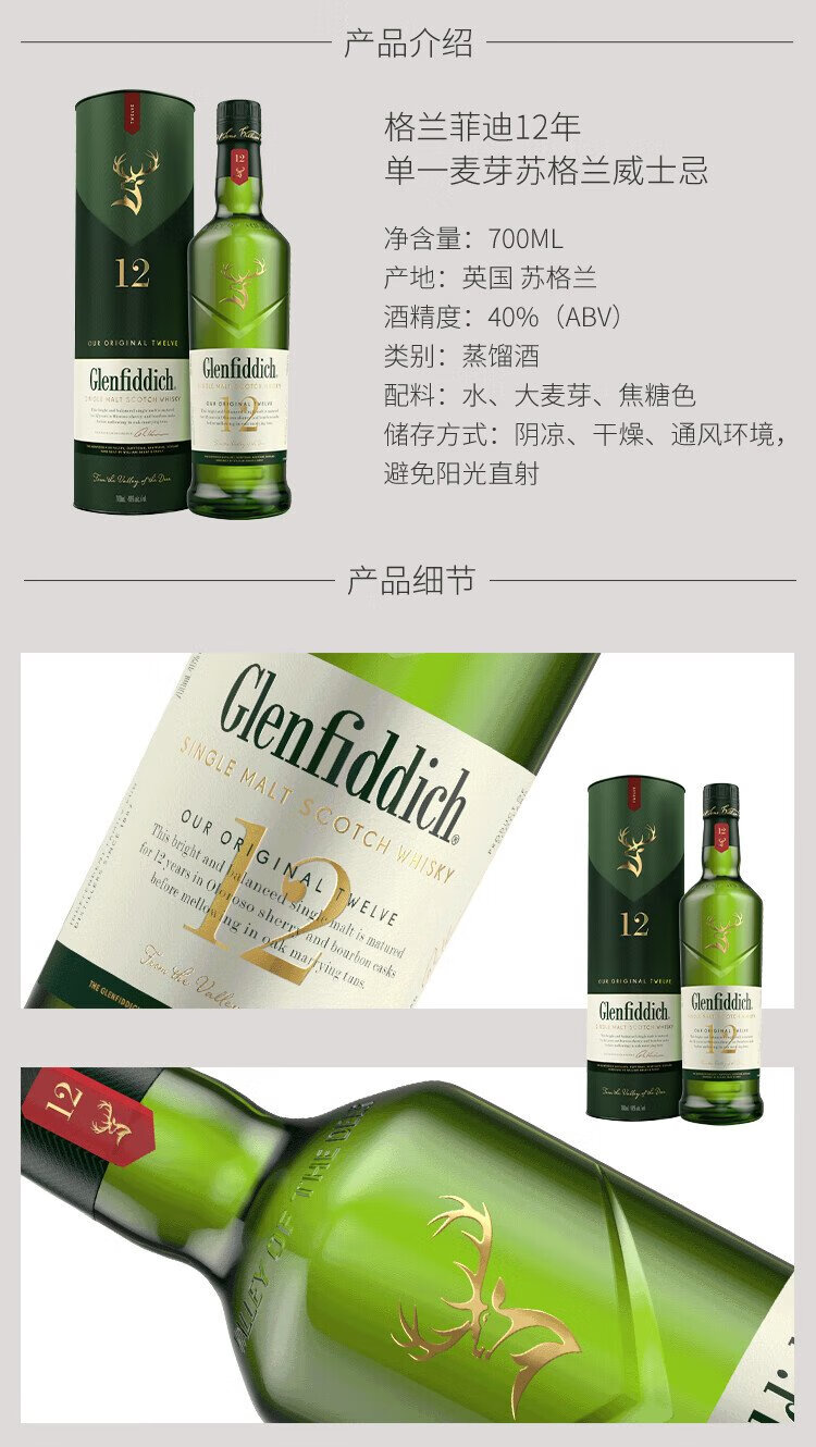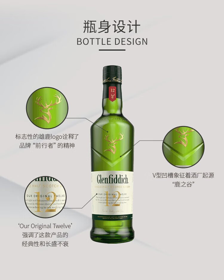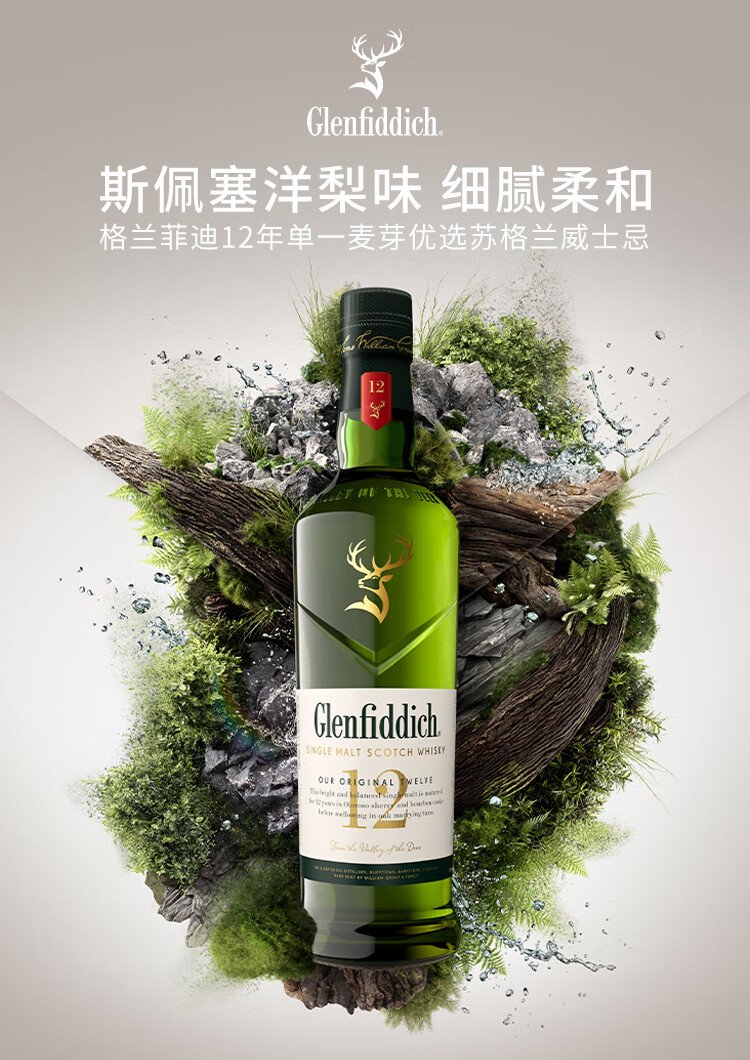 格兰菲迪(GLENFIDDICH)核心系列12年 苏格兰单一麦芽威士忌 洋酒礼盒700ml 礼物送礼