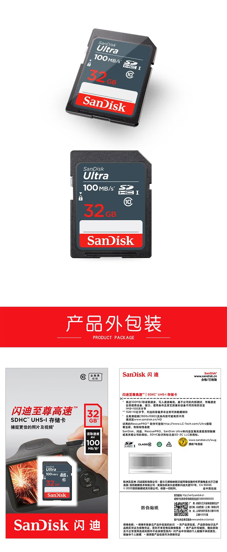 SanDisk 32GB SD camera memory card C10 shoots full HD video mirrorless/SLR digital camera memory card, durable and extremely cost-effective