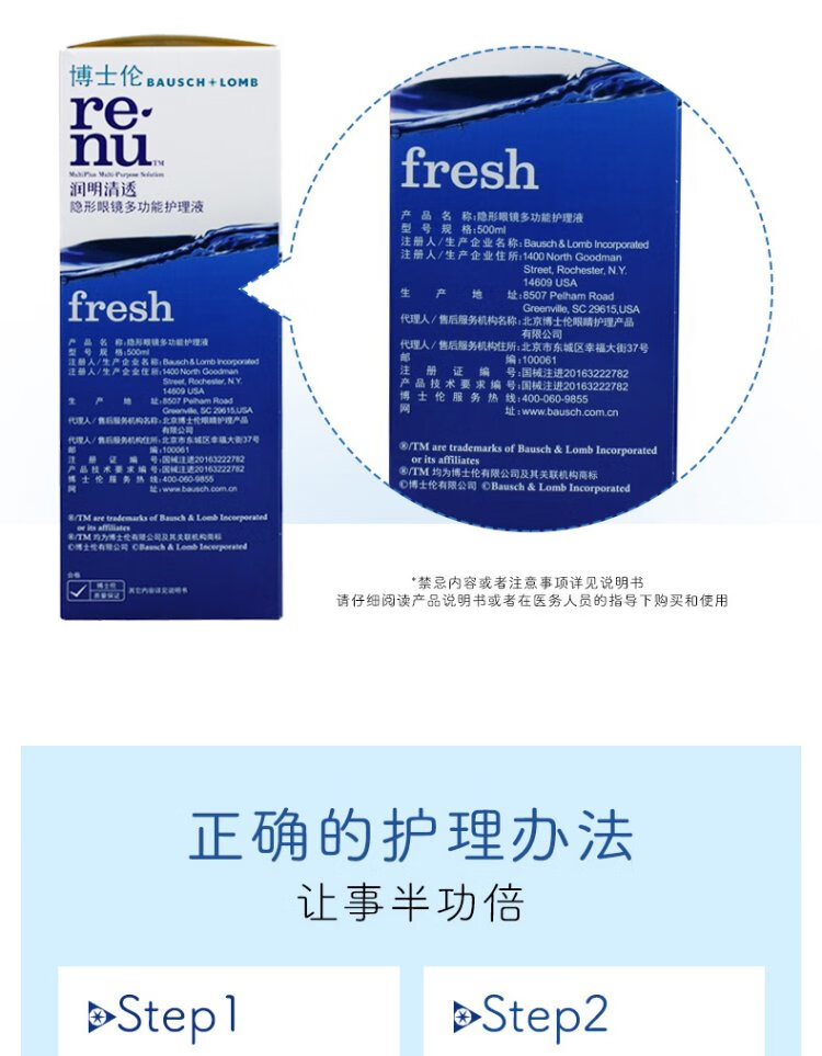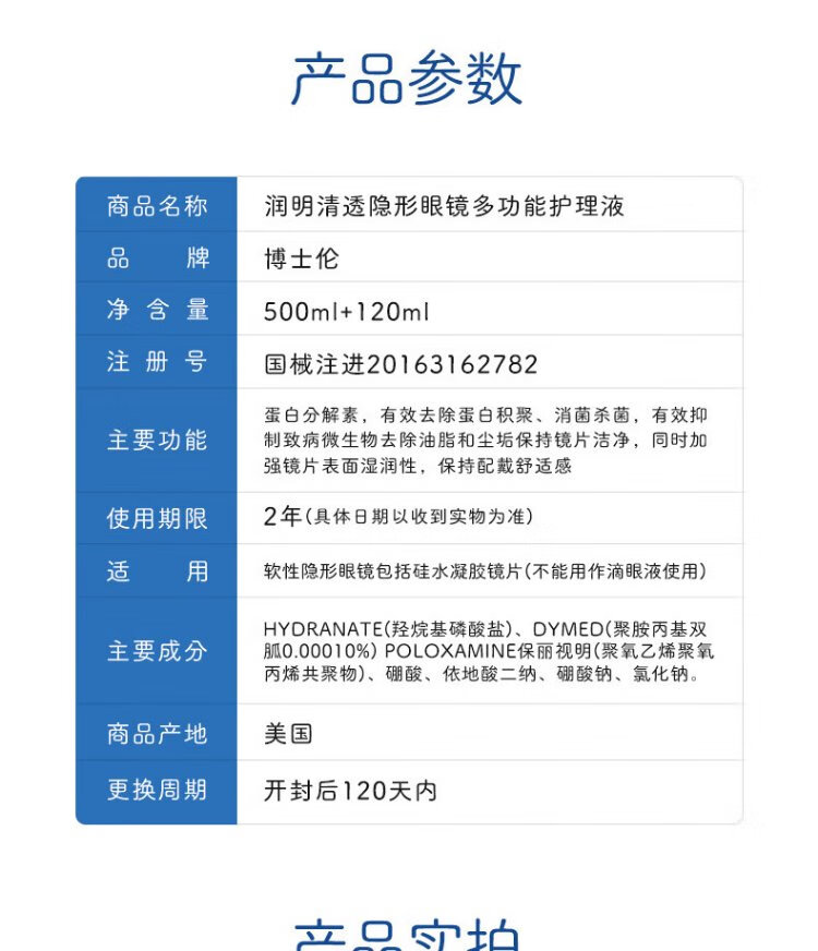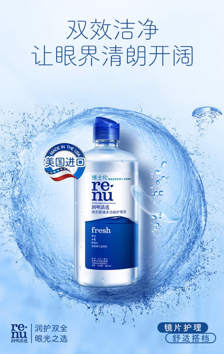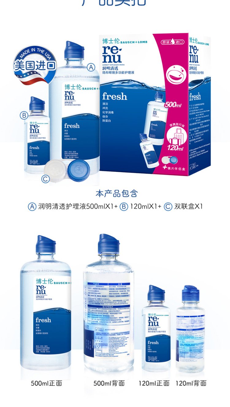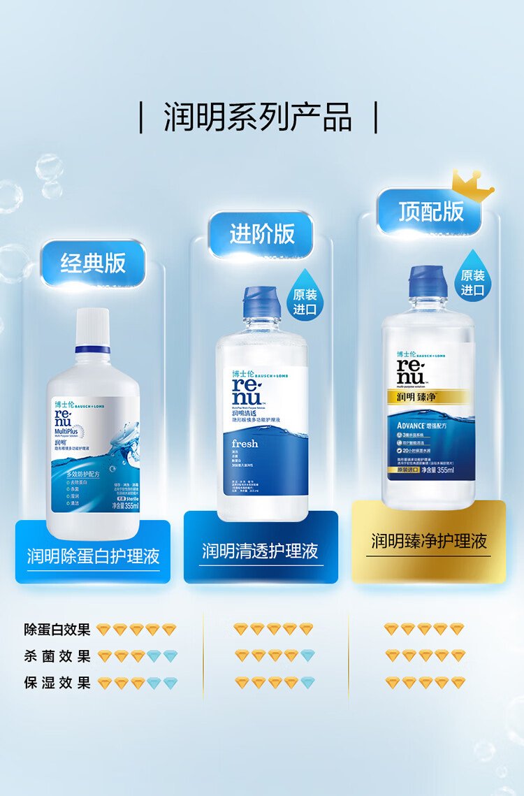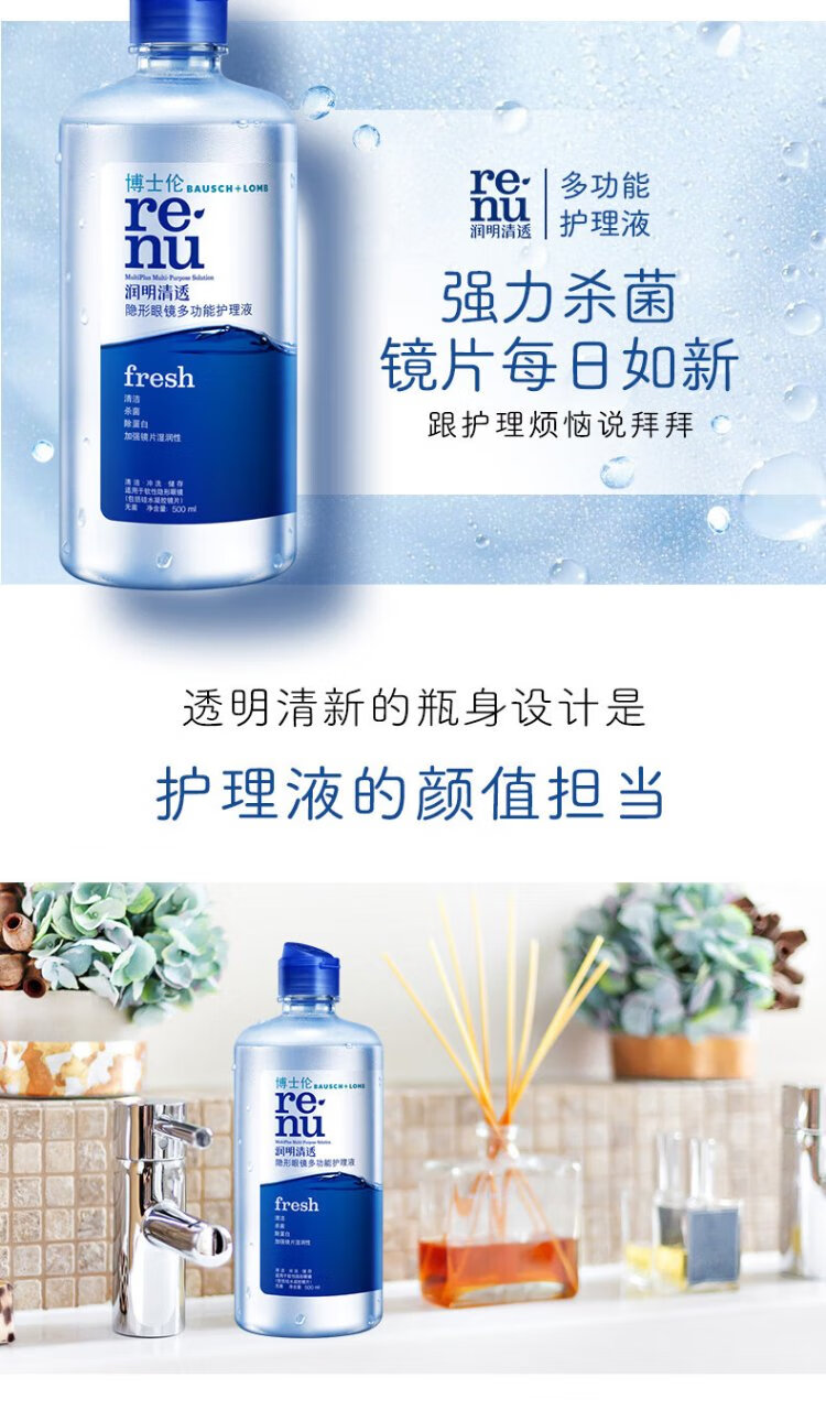 博士伦润明清透隐形眼镜水护理液620ml美瞳护理液清洁杀菌除蛋白进口