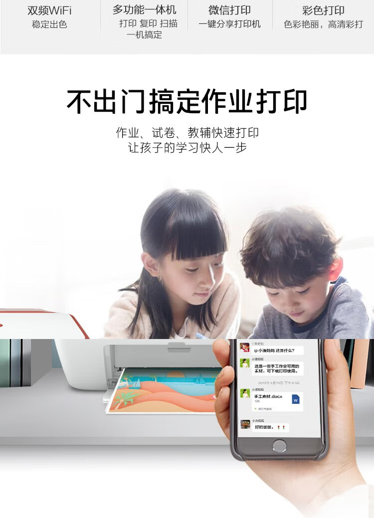 惠普(HP) 2779/2729 彩色喷墨多功能打印机一体机家用学生作业照片A4三合一 2729打印机(打印复印扫描+无线wifi)