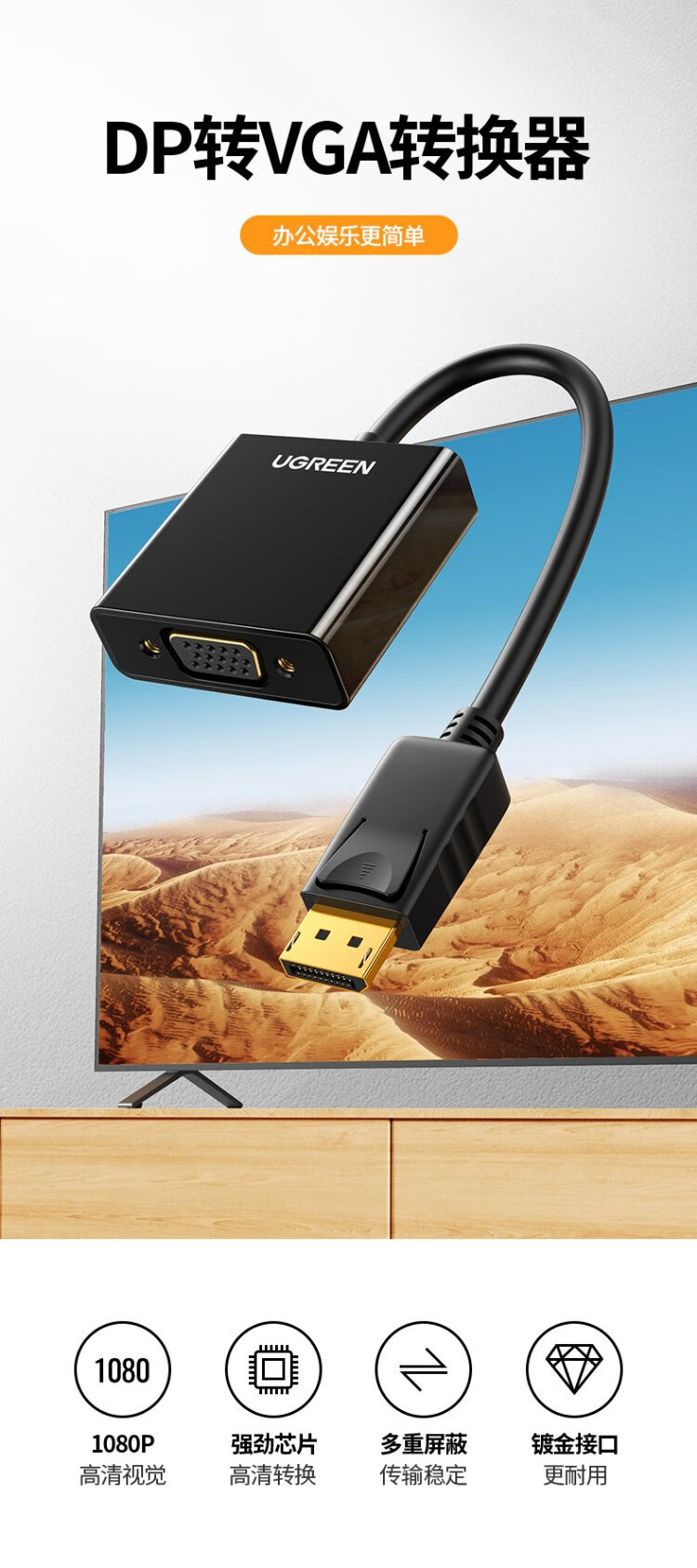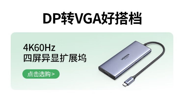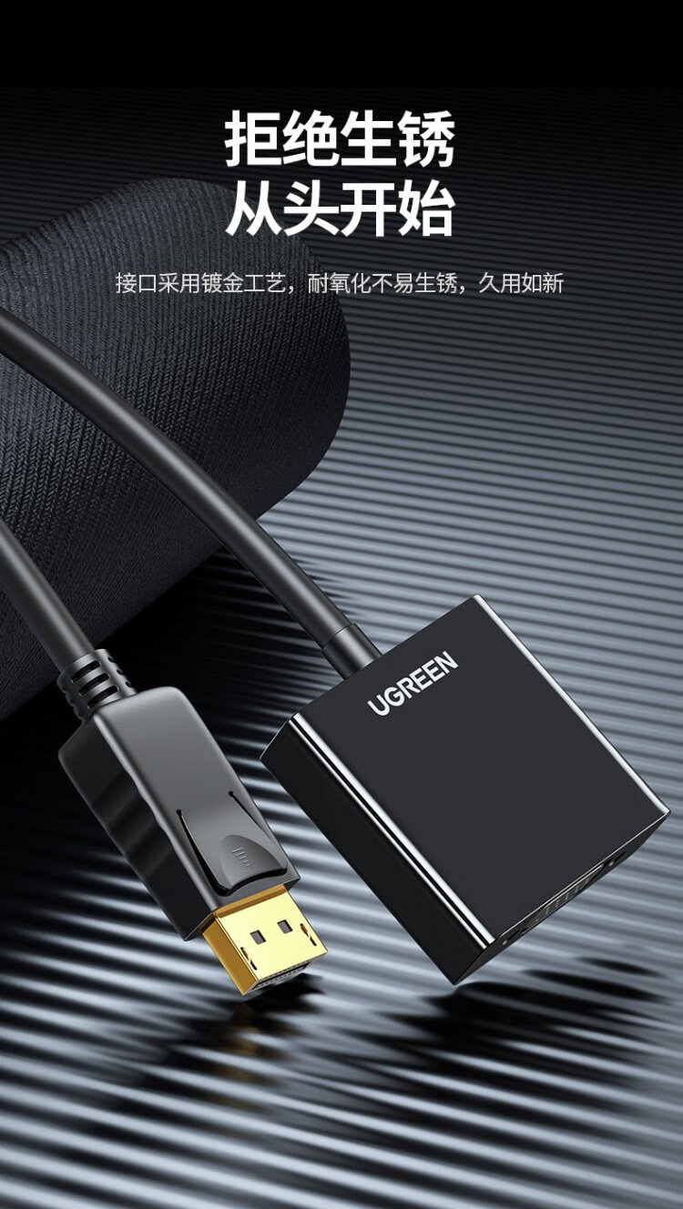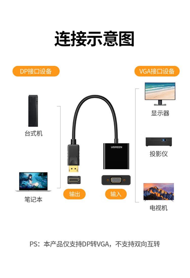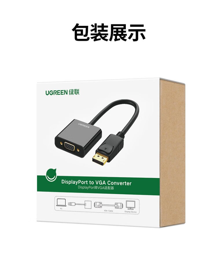 绿联 DP转VGA转换器 DisplayPort转VGA母头高清视频转接头线 适用电脑台式机接显示器电视投影仪20415