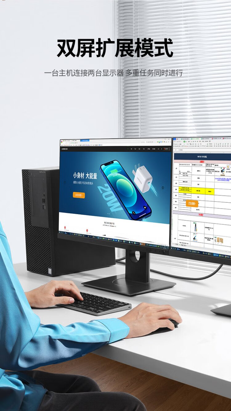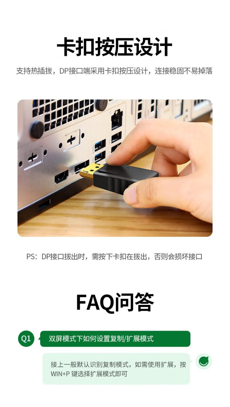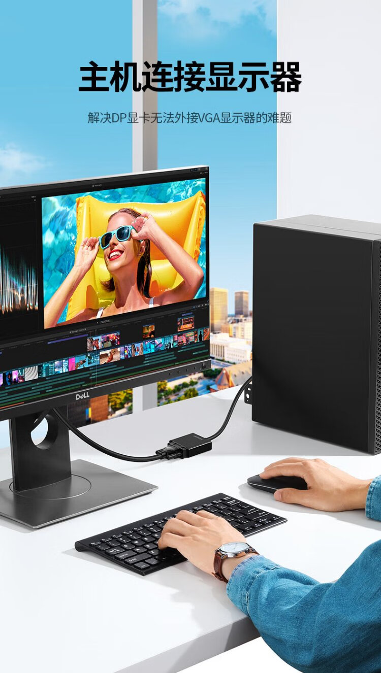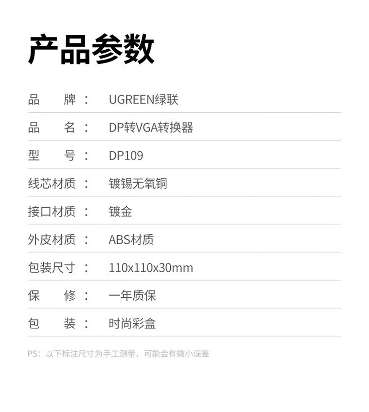 绿联 DP转VGA转换器 DisplayPort转VGA母头高清视频转接头线 适用电脑台式机接显示器电视投影仪20415