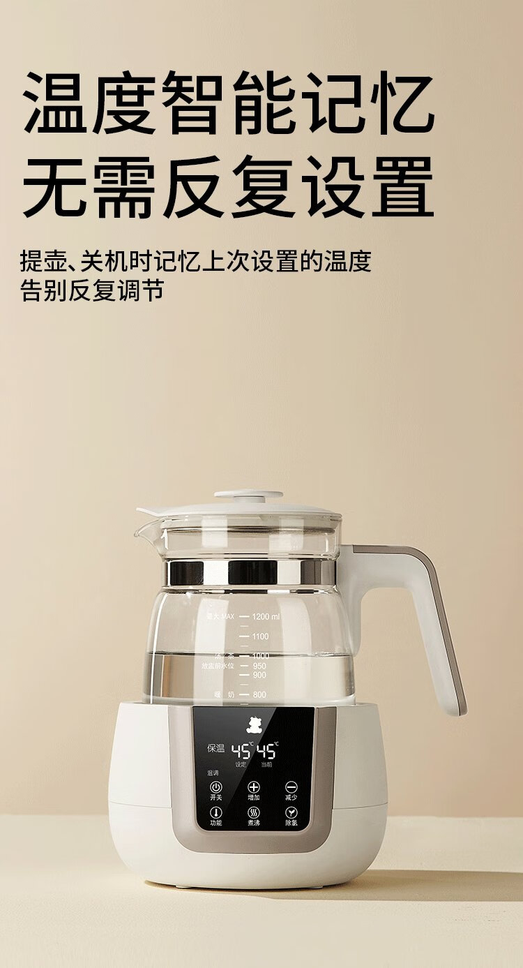 小白熊SnowBear恒温水壶婴儿调奶器奶瓶冲泡奶粉热水壶温奶器1.2L烧水壶 0857