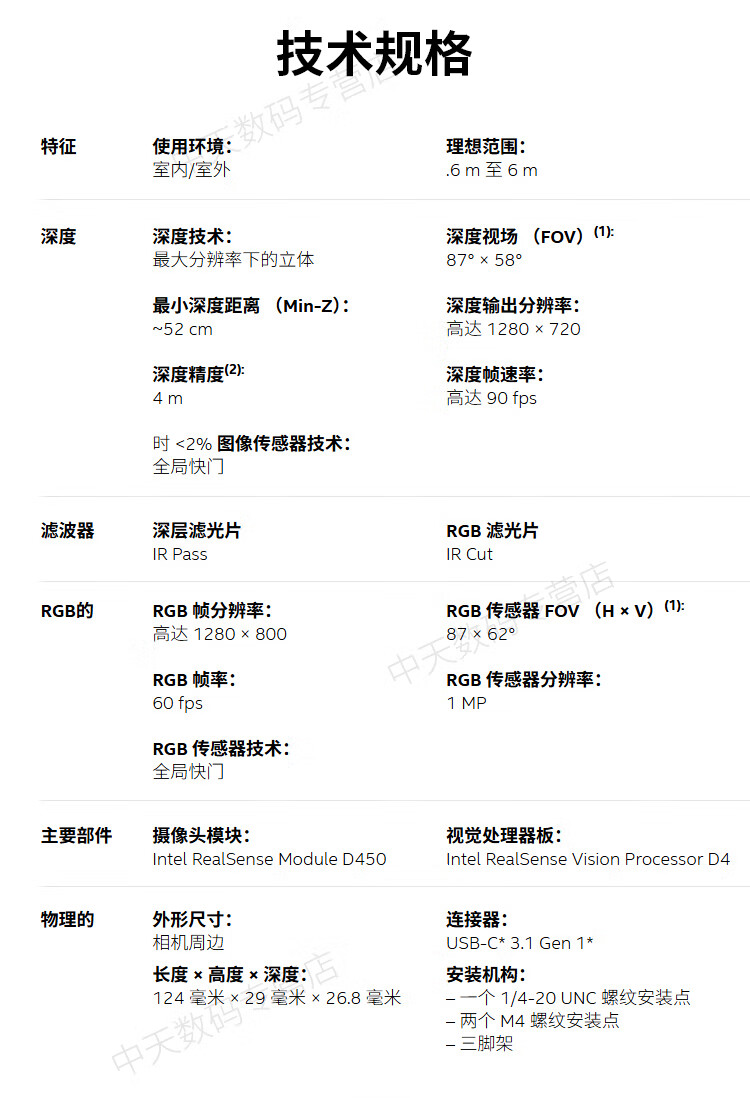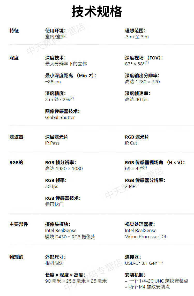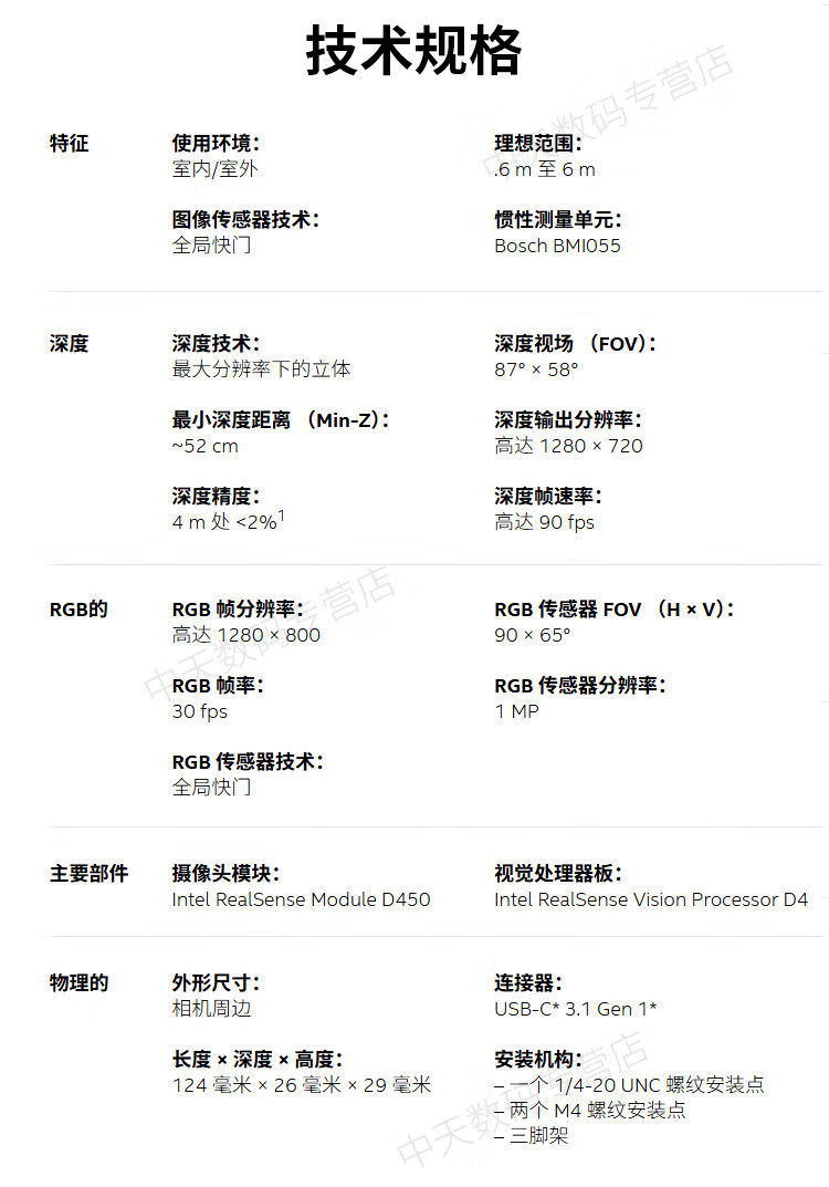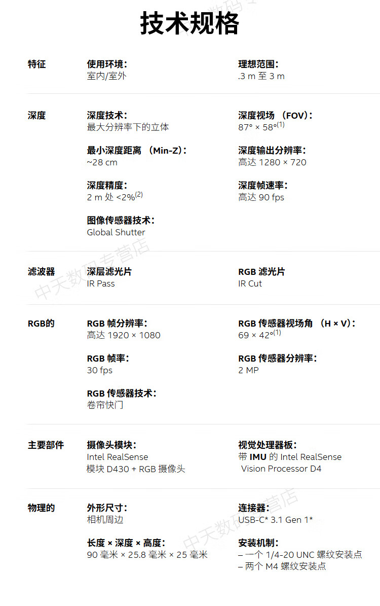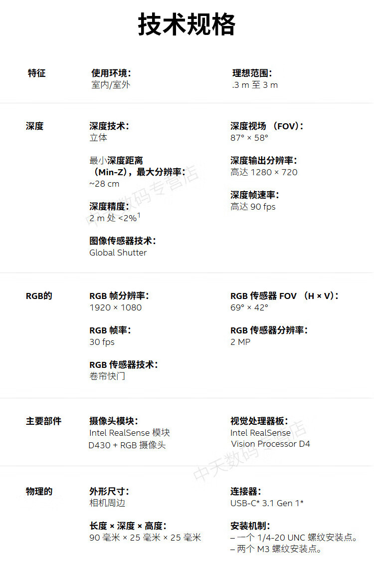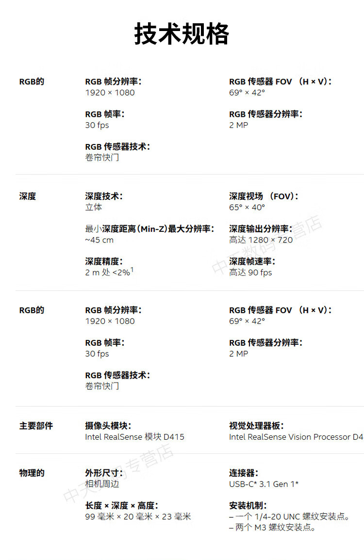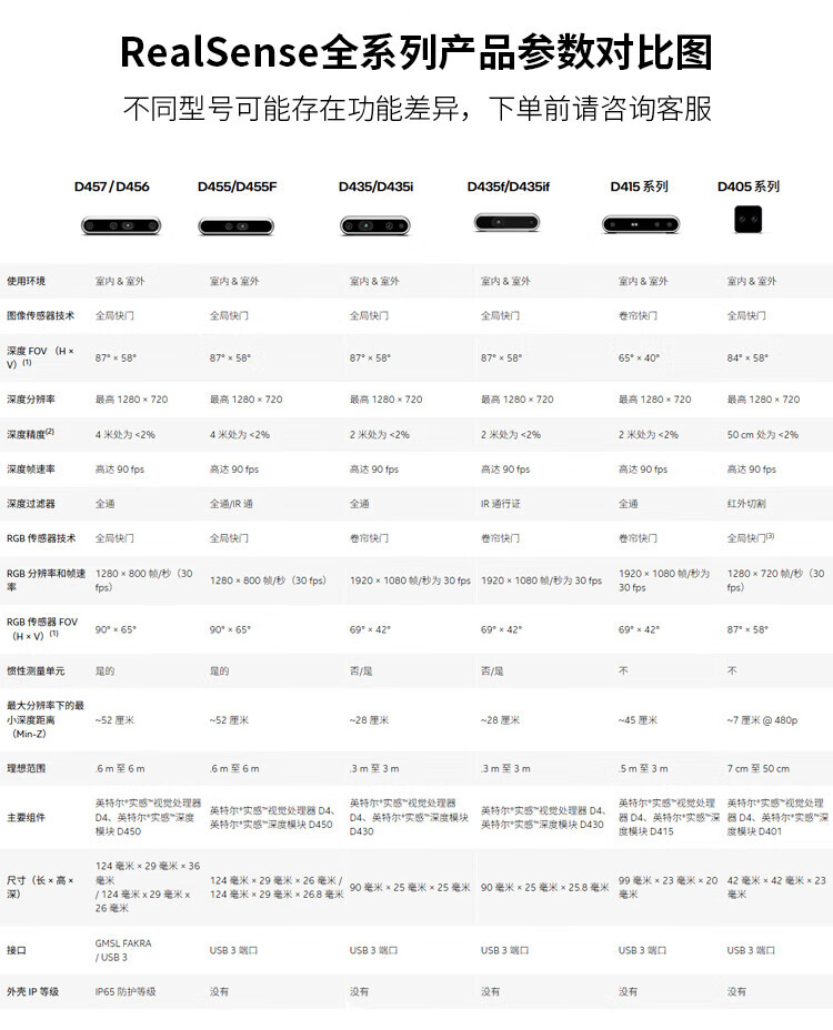 英特尔Intel RealSense D455深度相机 D435i深度实感摄像头D405双目立体相机3D建模数码相机避障人脸识别 D435(可开专票)