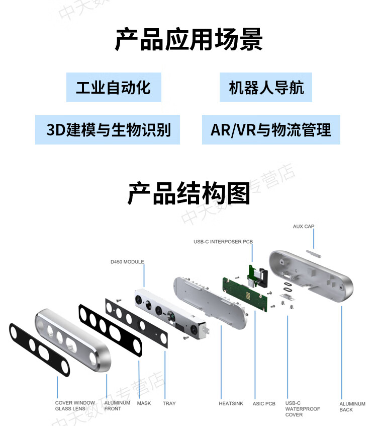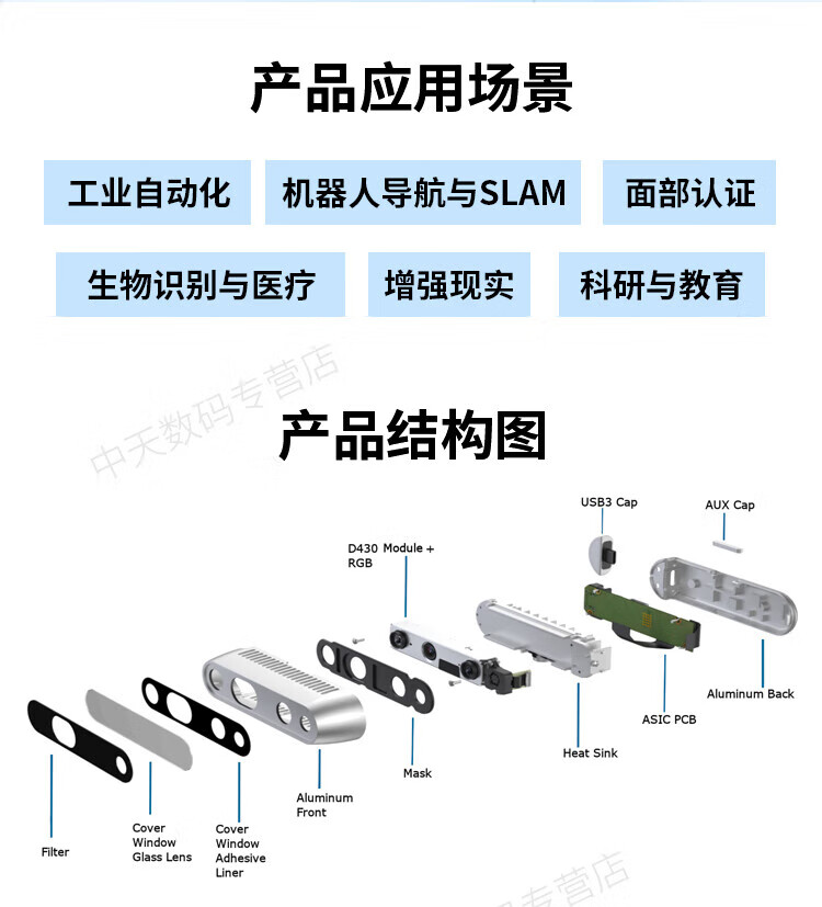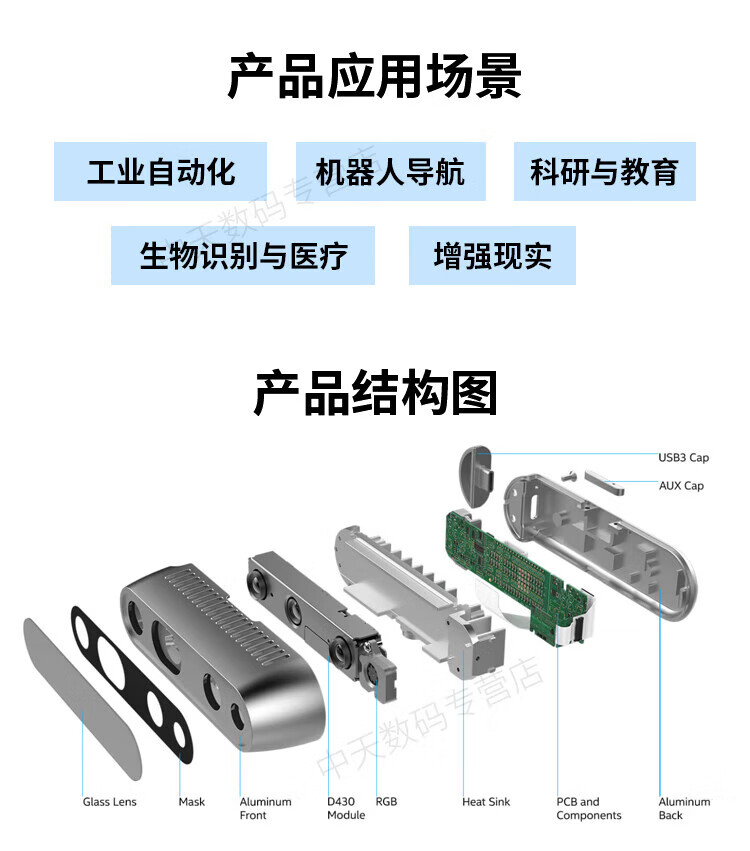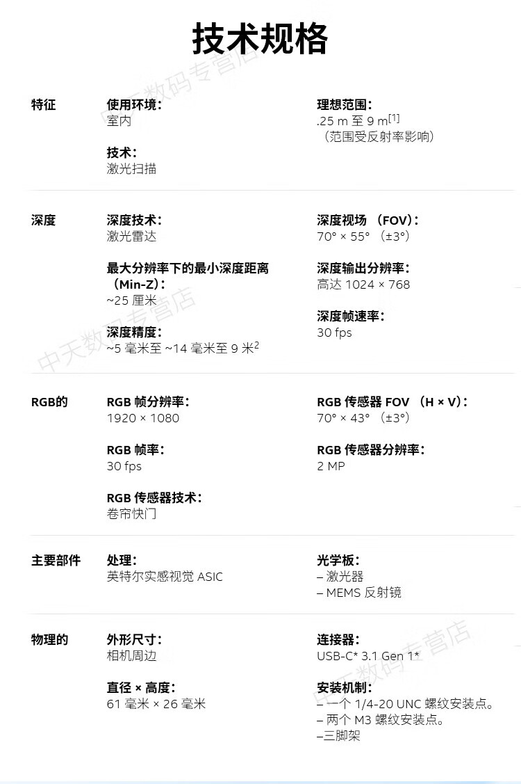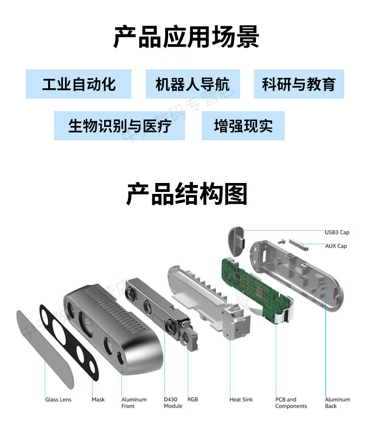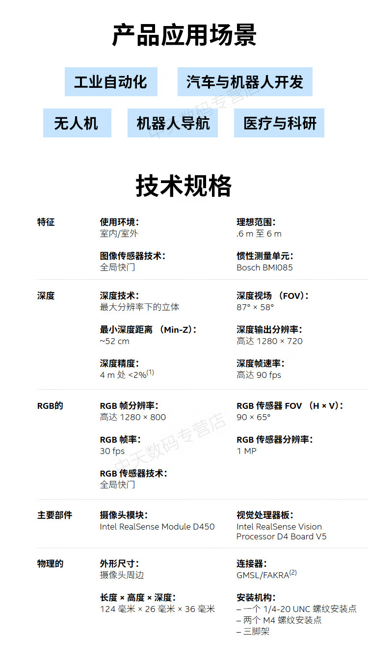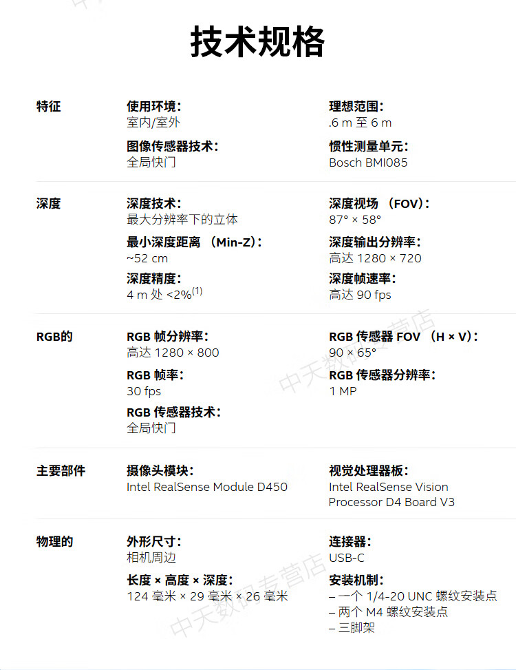 英特尔Intel RealSense D455深度相机 D435i深度实感摄像头D405双目立体相机3D建模数码相机避障人脸识别 D435(可开专票)