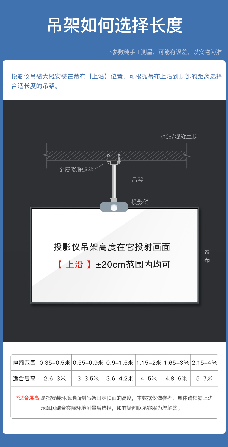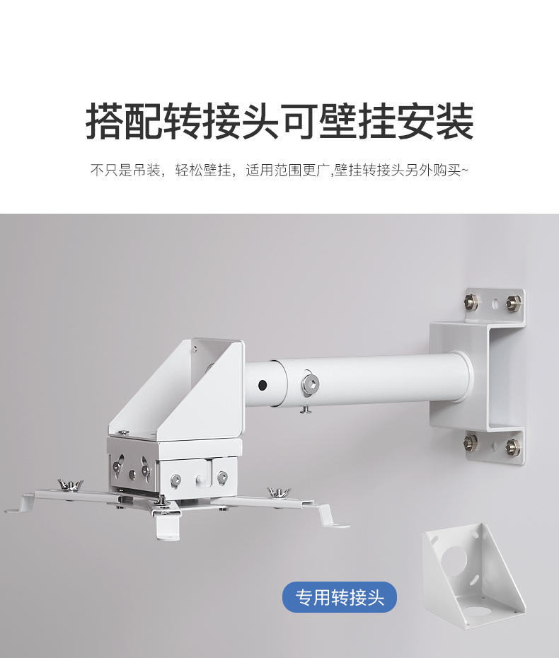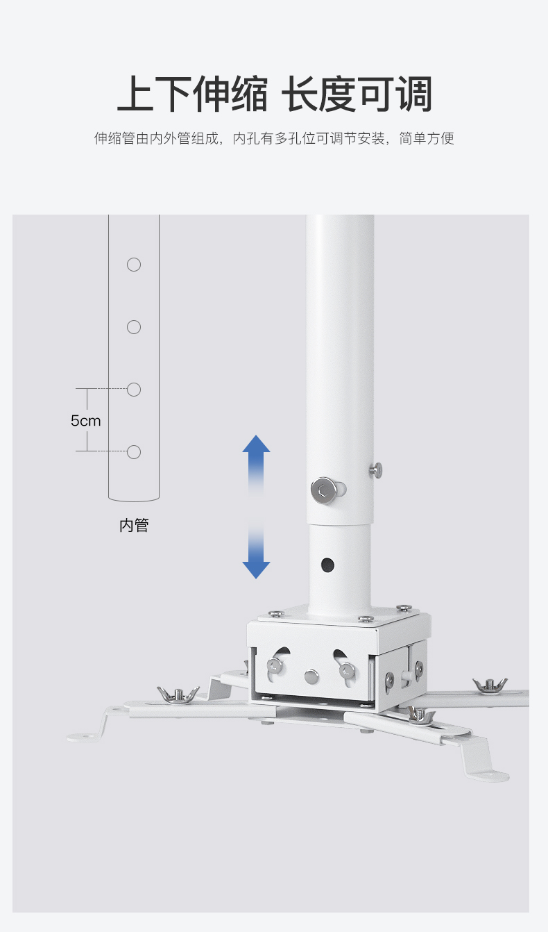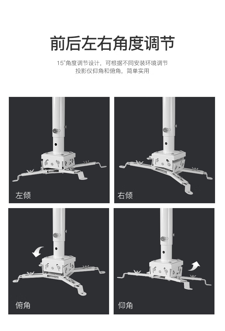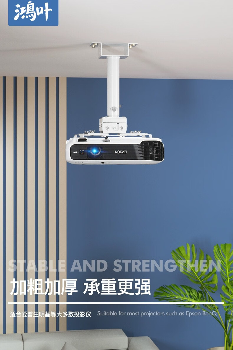 鸿叶 投影仪吊架投影机支架吊装 小工程架子适用爱普生5750明基松下索尼奥图码通用吊杆加厚吊顶挂架 加厚-白色 伸缩长度0.35-0.5米