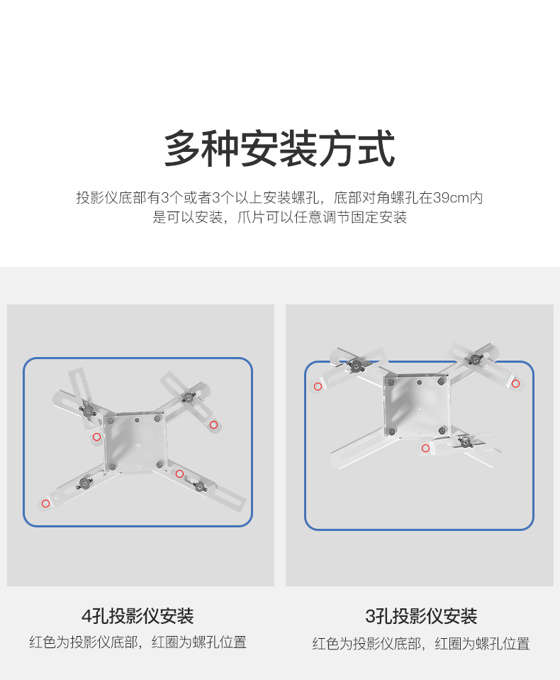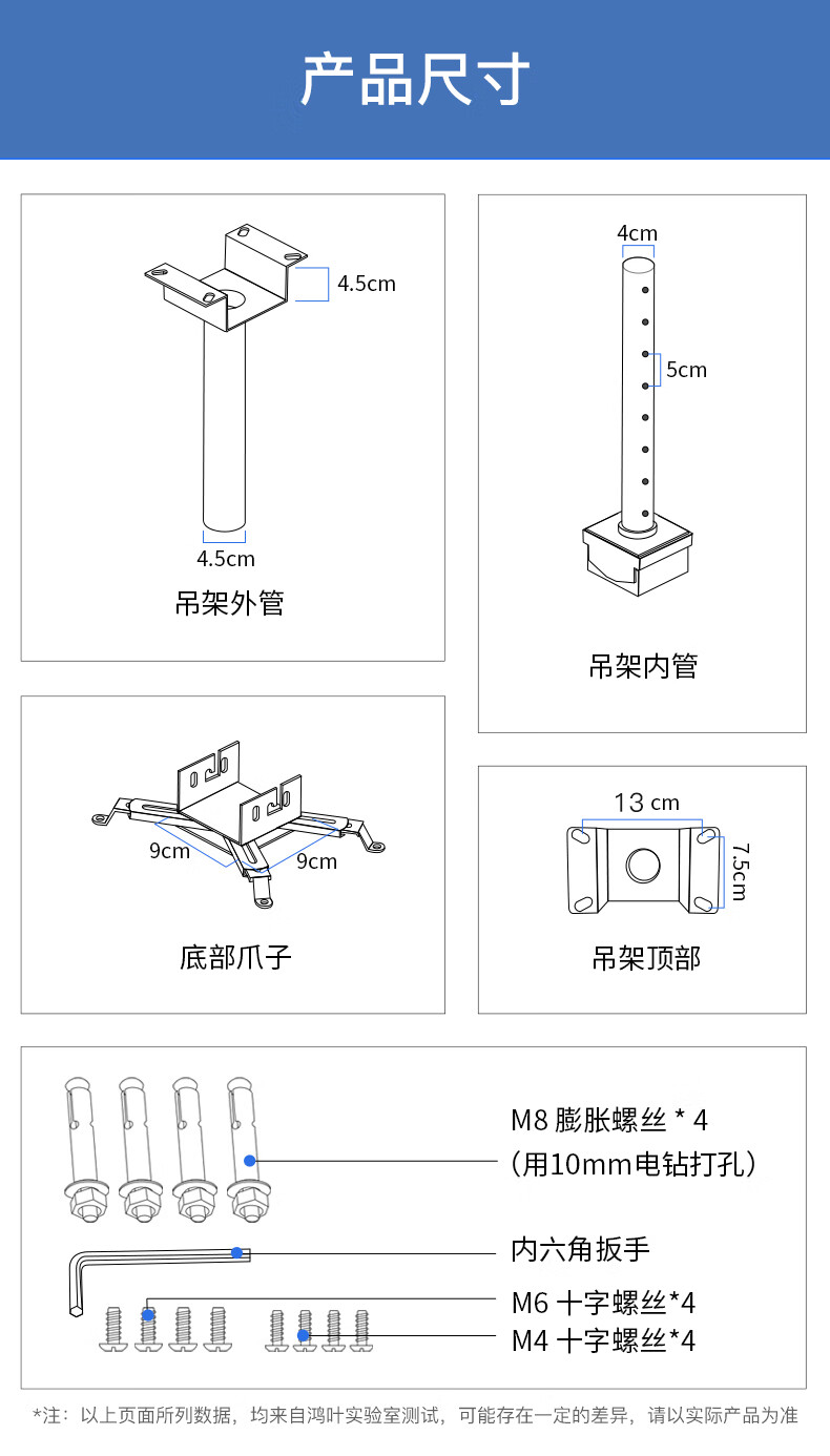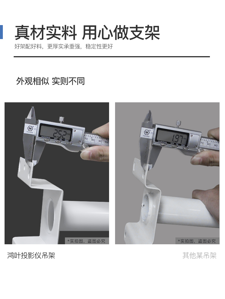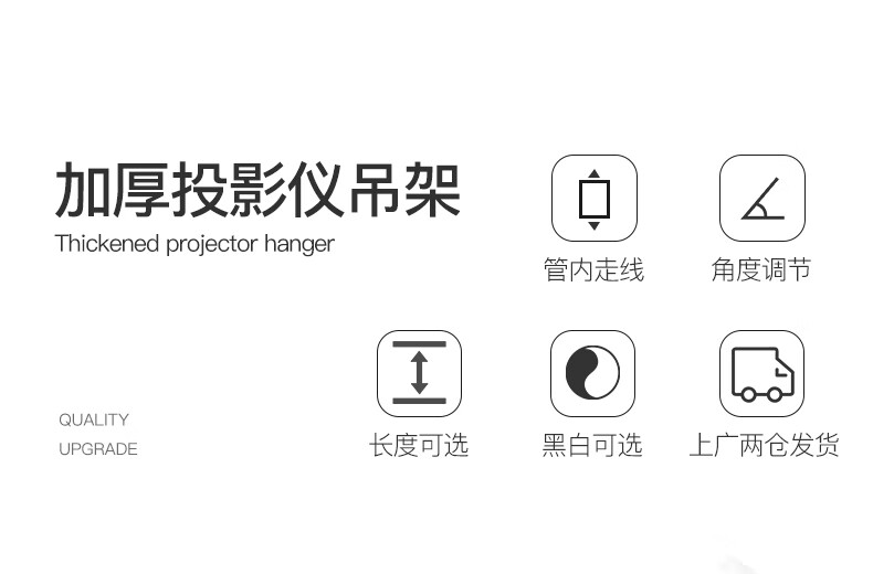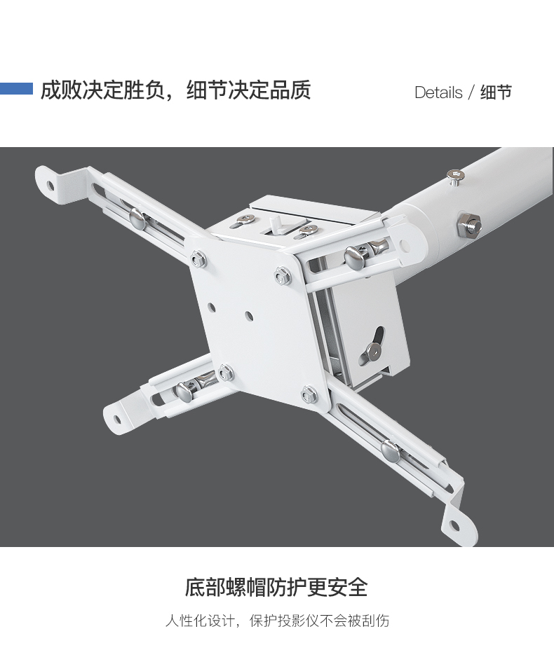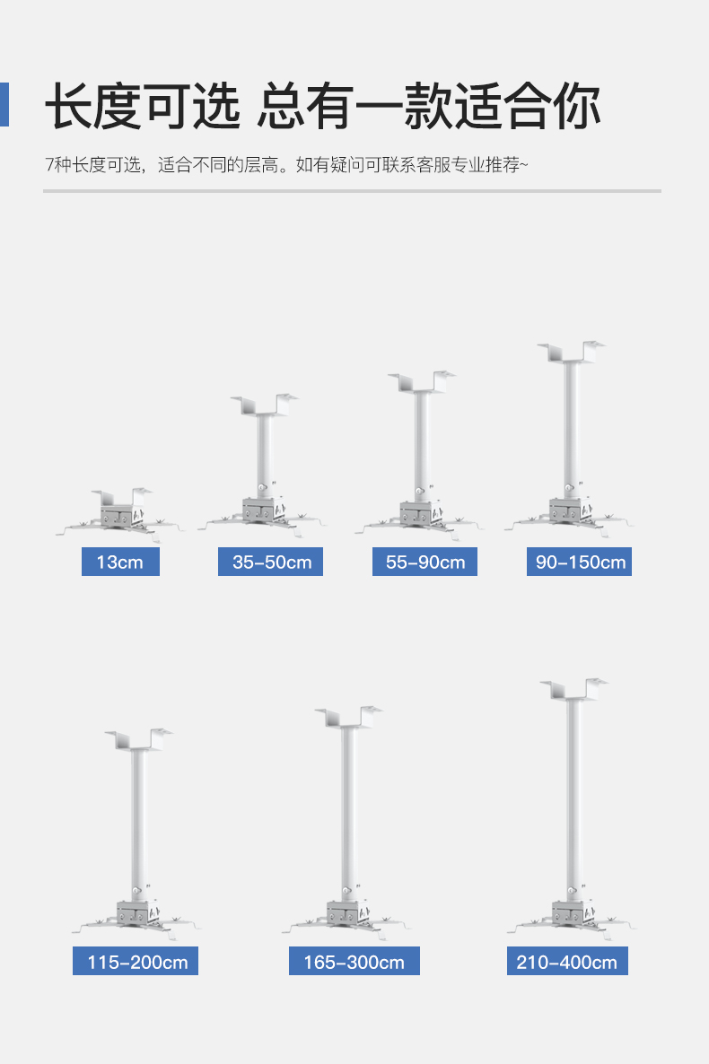 鸿叶 投影仪吊架投影机支架吊装 小工程架子适用爱普生5750明基松下索尼奥图码通用吊杆加厚吊顶挂架 加厚-白色 伸缩长度0.35-0.5米