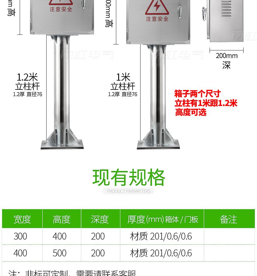 Roots outdoor waterproof and rainproof column box outdoor stainless steel distribution box floor-standing new energy charging pile protection box monitoring column 1 meter 400 500 200 thickened