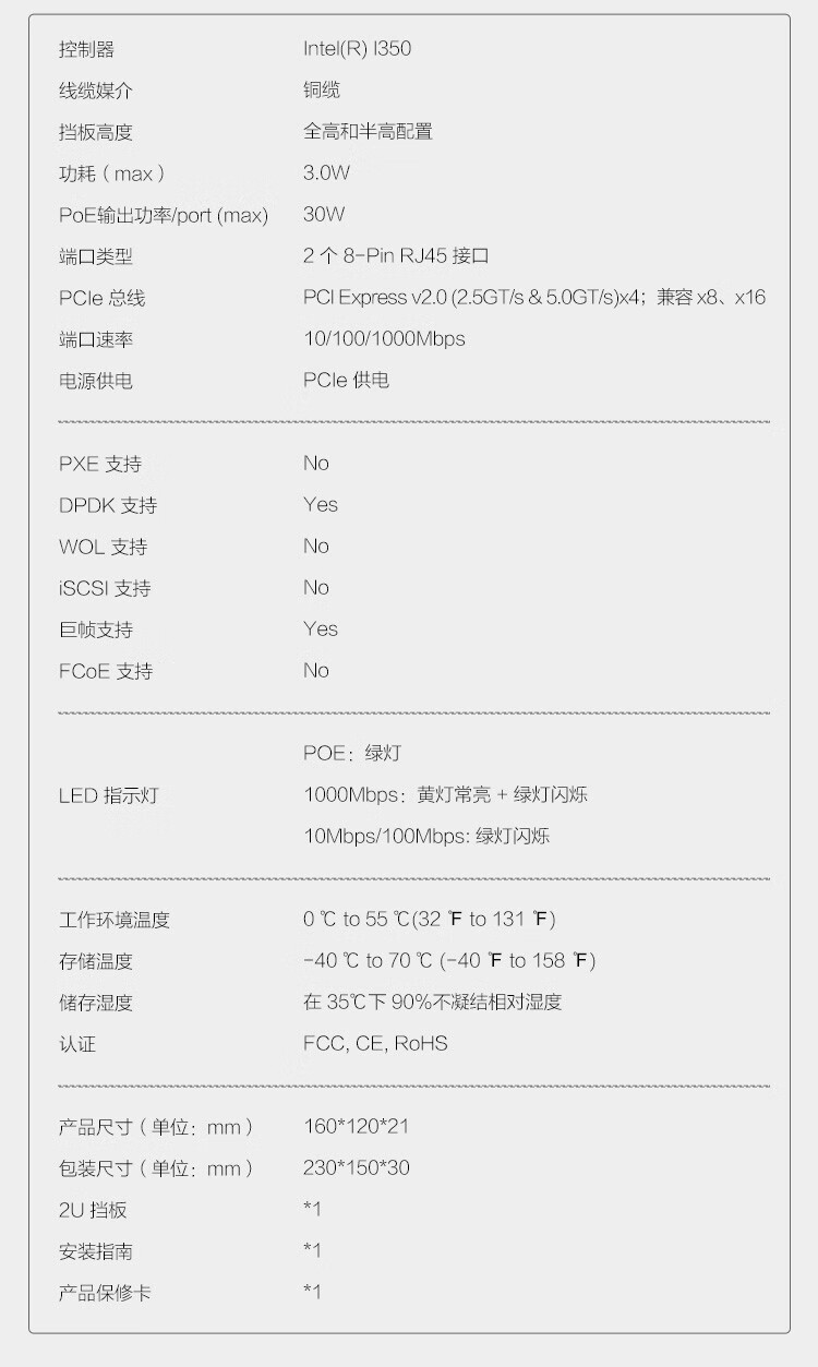 LR-LINK 联瑞PCIEx4千兆双/四电口PoE网卡基于Intel I350 芯片稳定可靠 (I350双口POE)LRES2002PT-POE