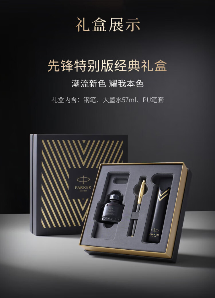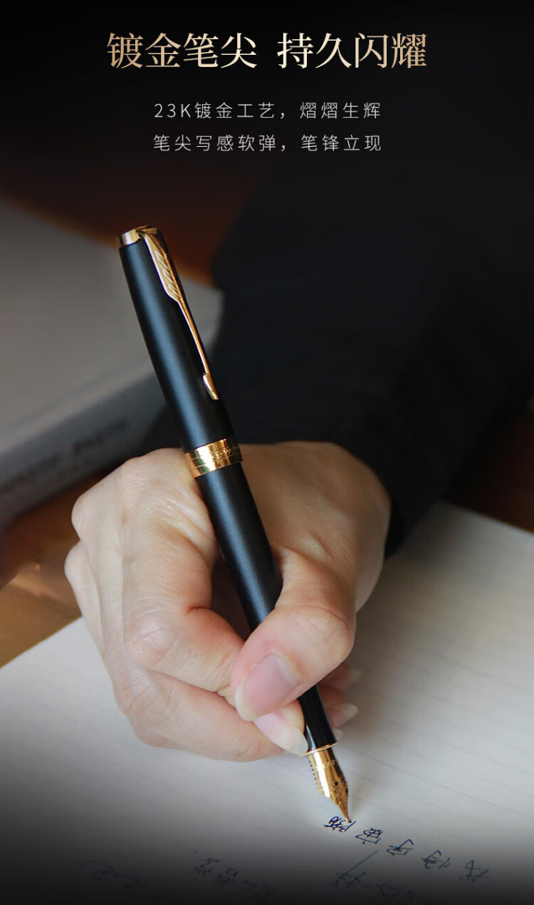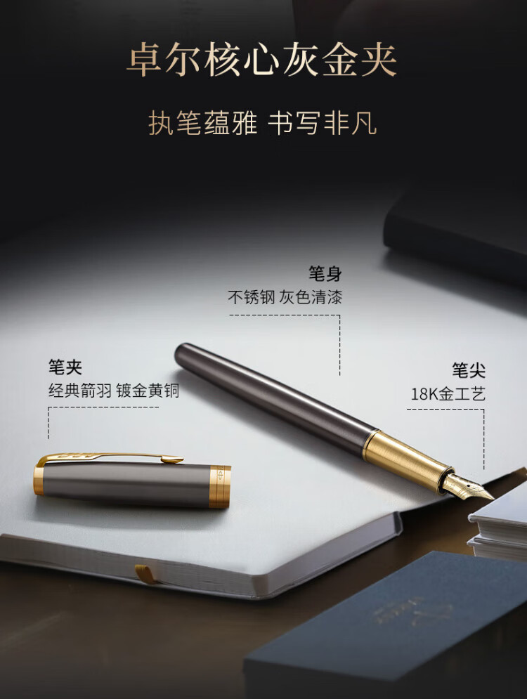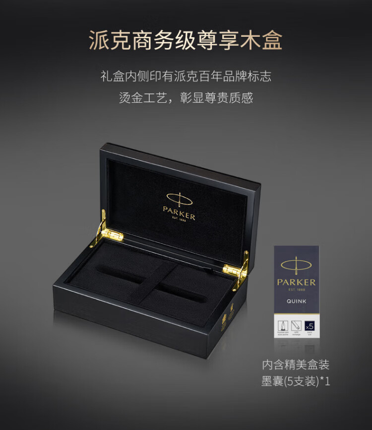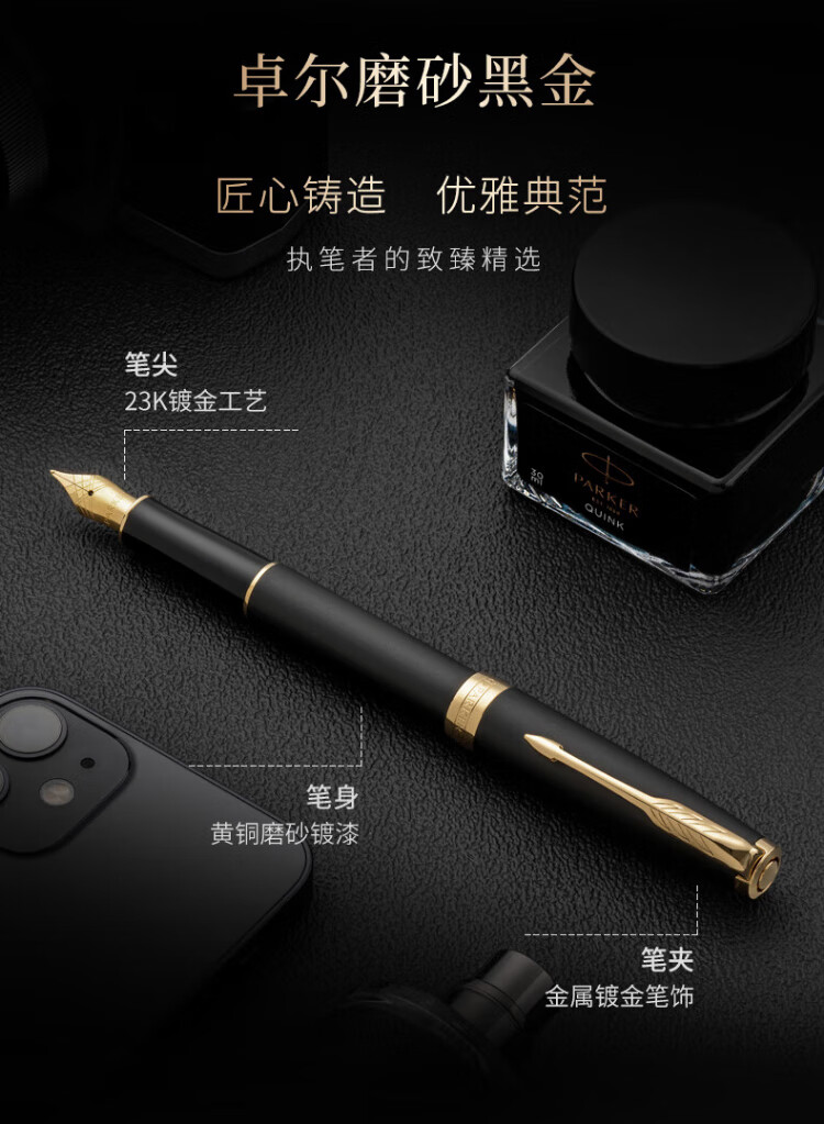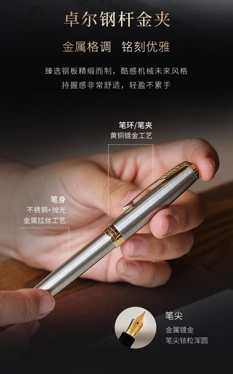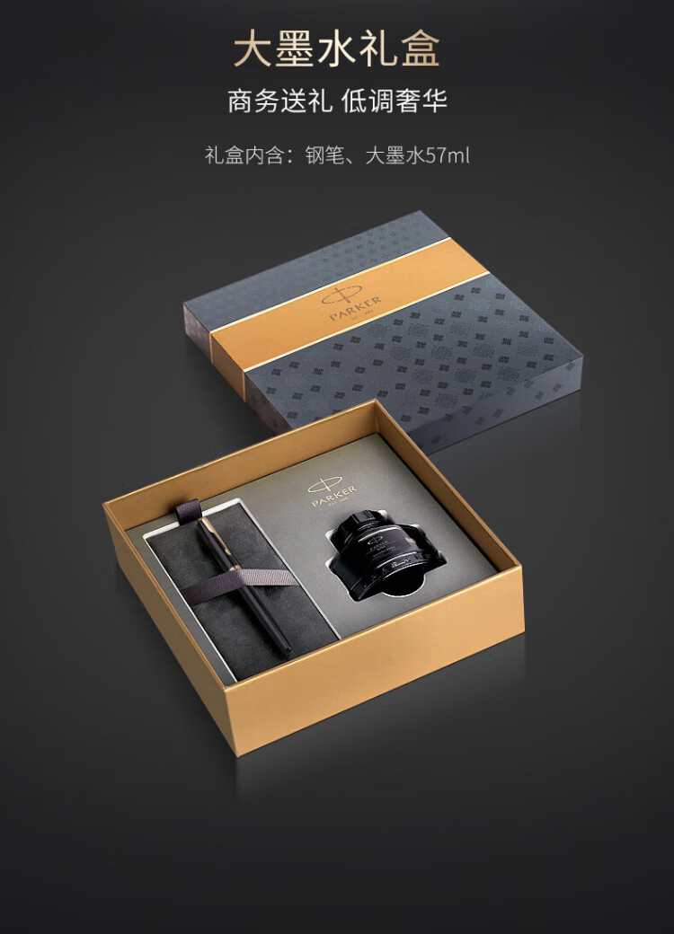派克(PARKER)钢笔卓尔18K金笔大墨水礼盒套装男士高端签字笔轻奢商务送礼生日礼物送老师长辈领导定制刻字 卓尔钢杆金墨水笔【23K镀金笔尖·墨水礼盒】