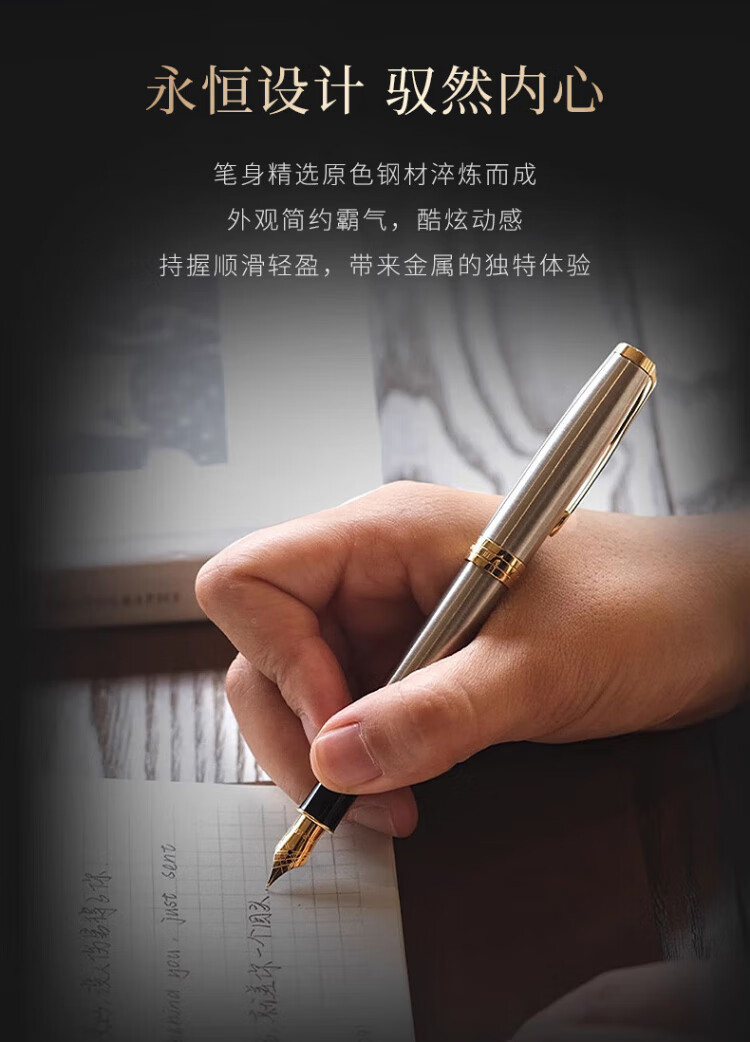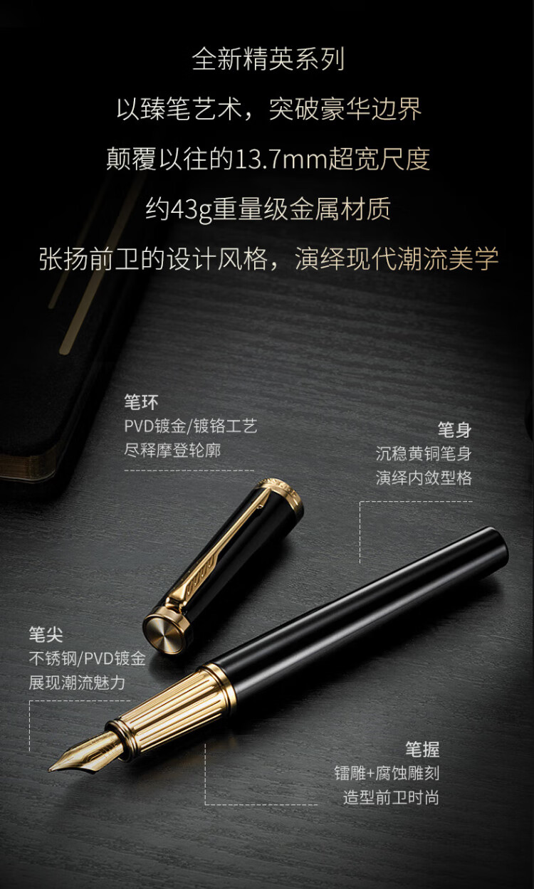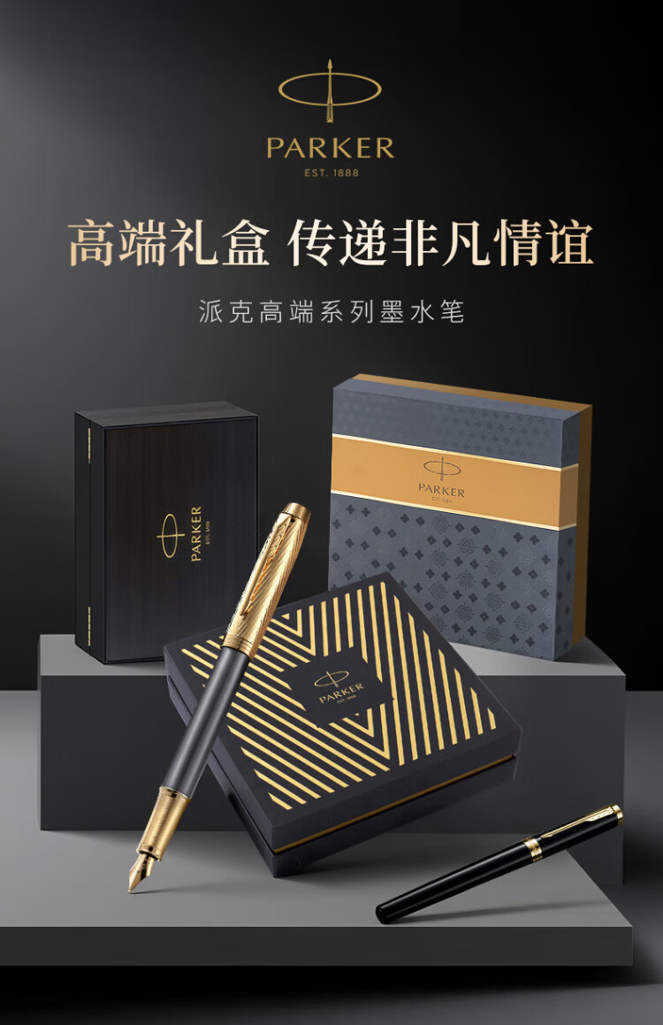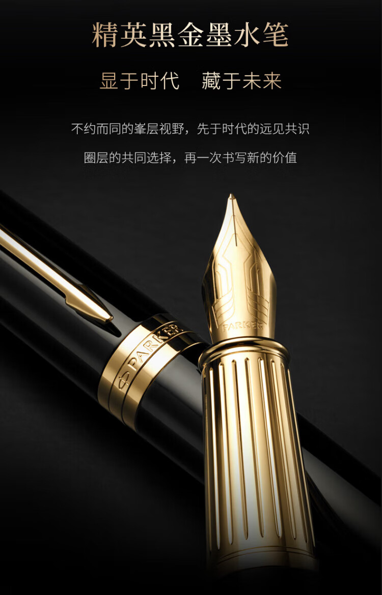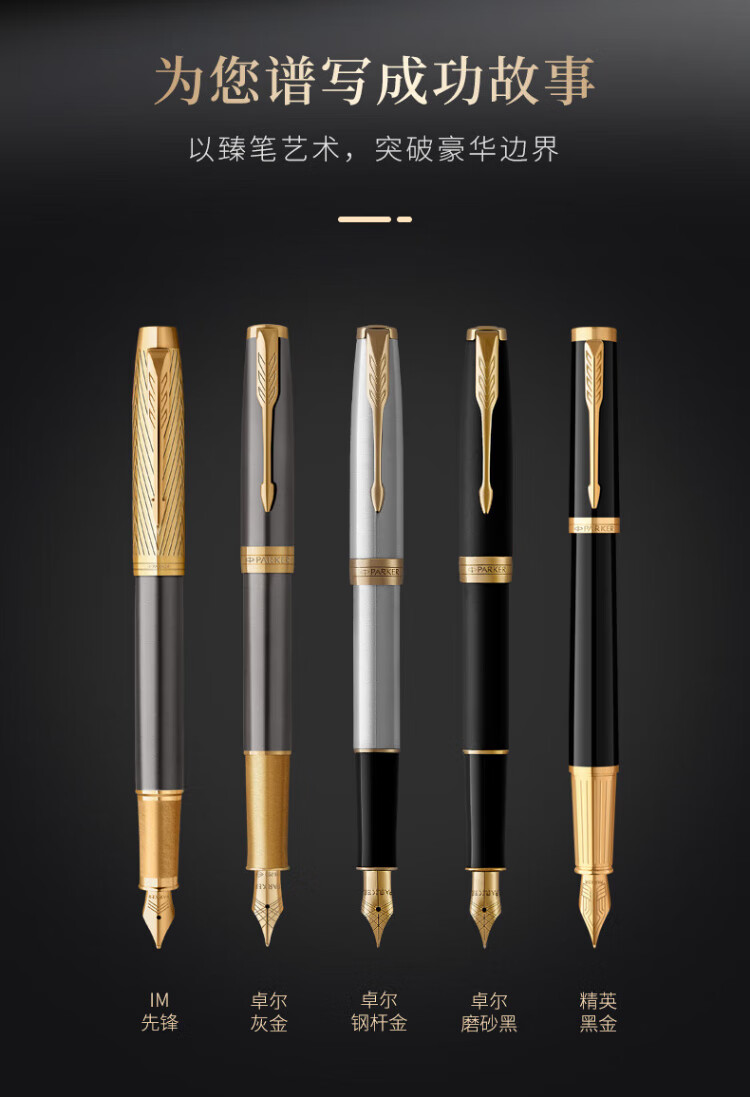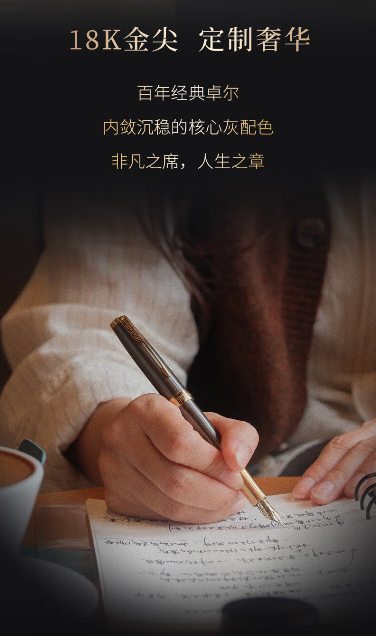 派克(PARKER)钢笔卓尔18K金笔大墨水礼盒套装男士高端签字笔轻奢商务送礼生日礼物送老师长辈领导定制刻字 卓尔钢杆金墨水笔【23K镀金笔尖·墨水礼盒】
