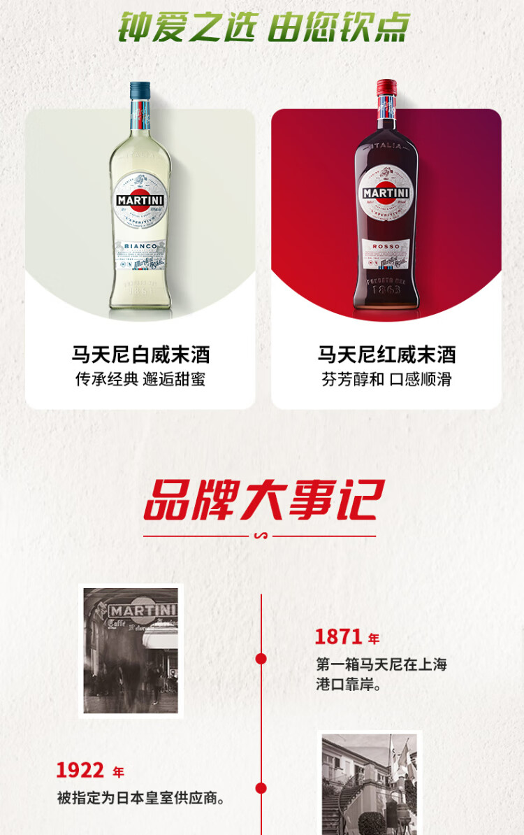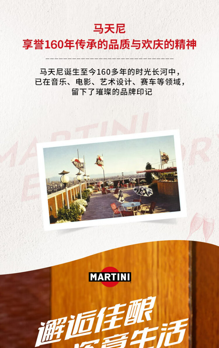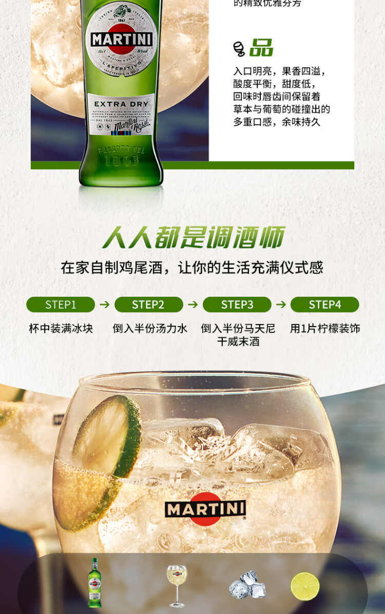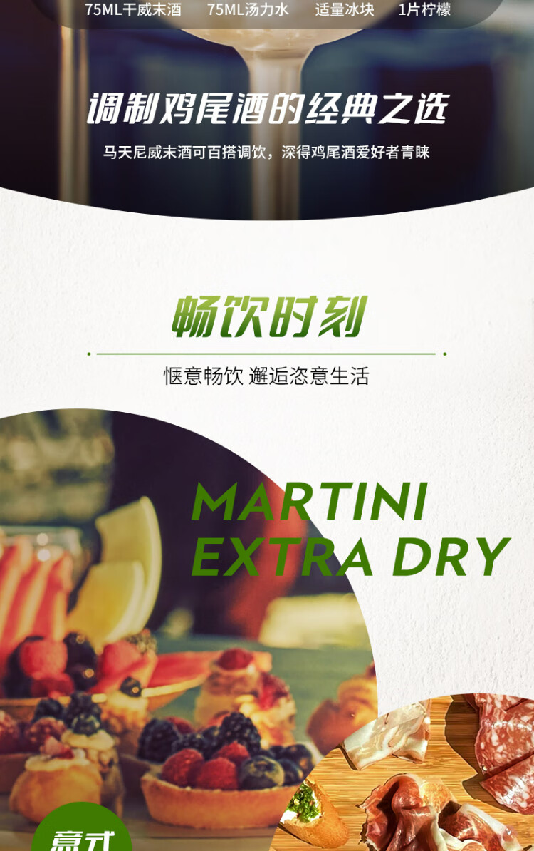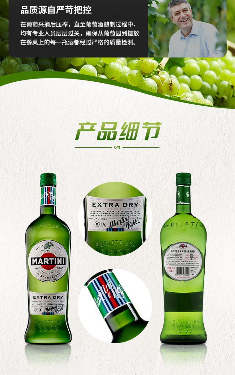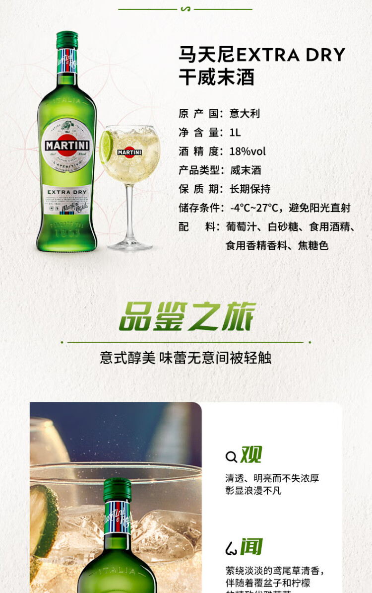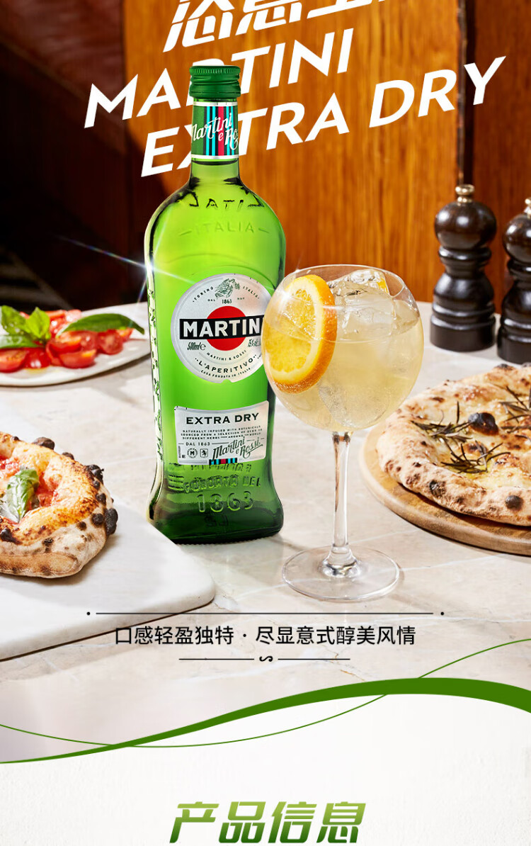 马天尼(Martini) 洋酒 意大利进口 干威末酒1L 调酒 鸡尾酒