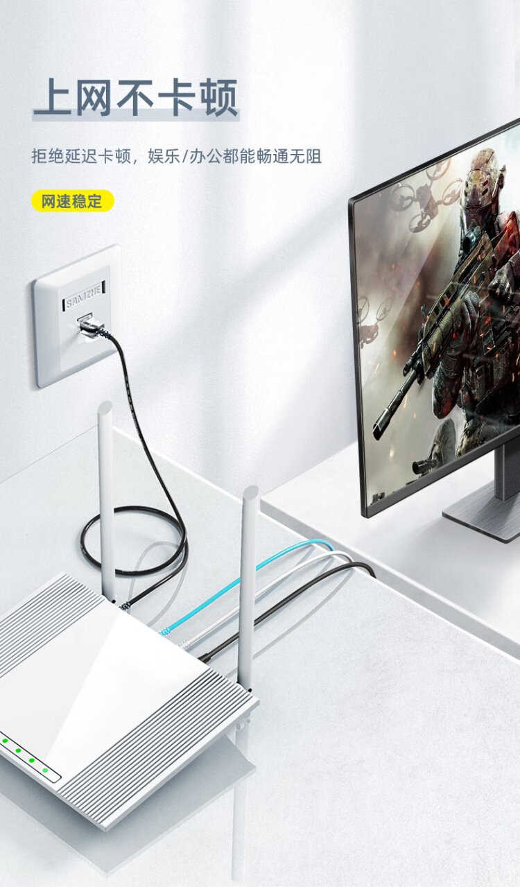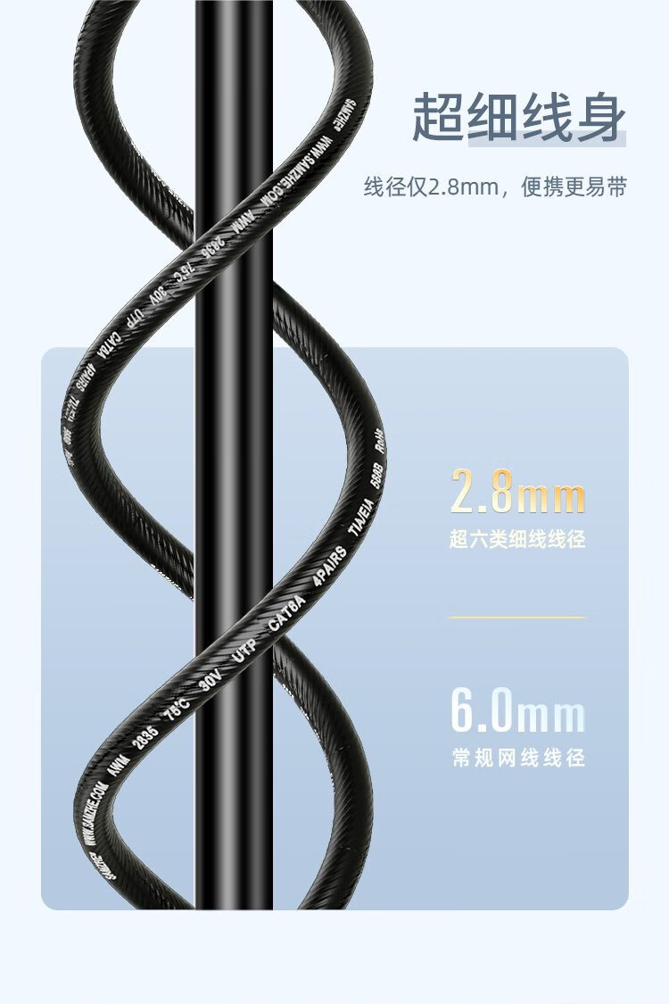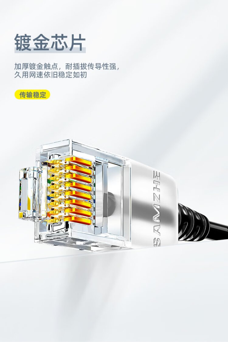 山泽超六类网线细线CAT6A类纯铜 万兆成品连接线 家用电脑宽带兼容千兆网络跳线 1.5米黑色SZH-6015