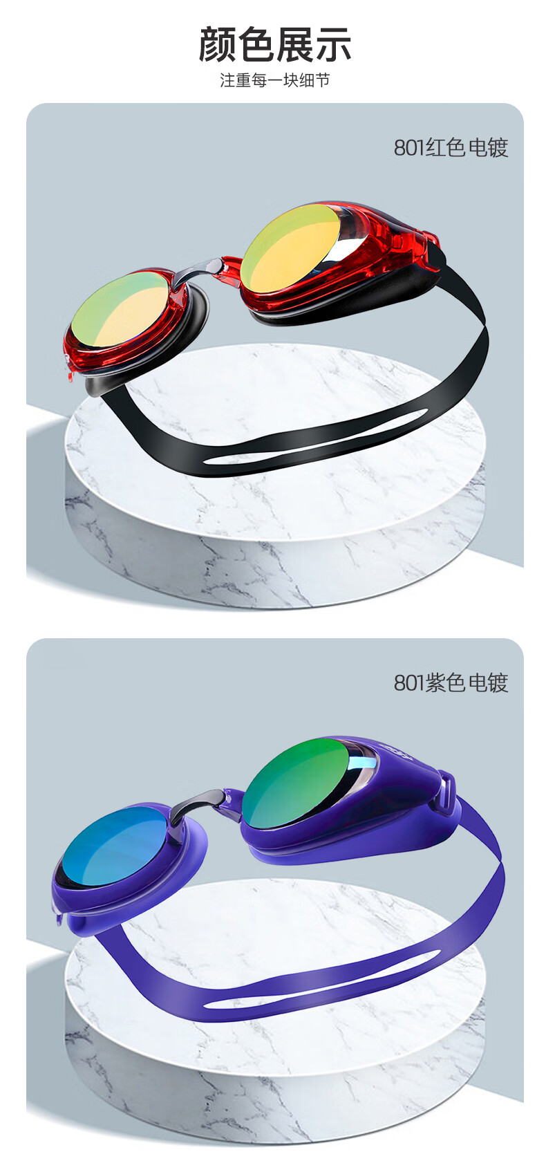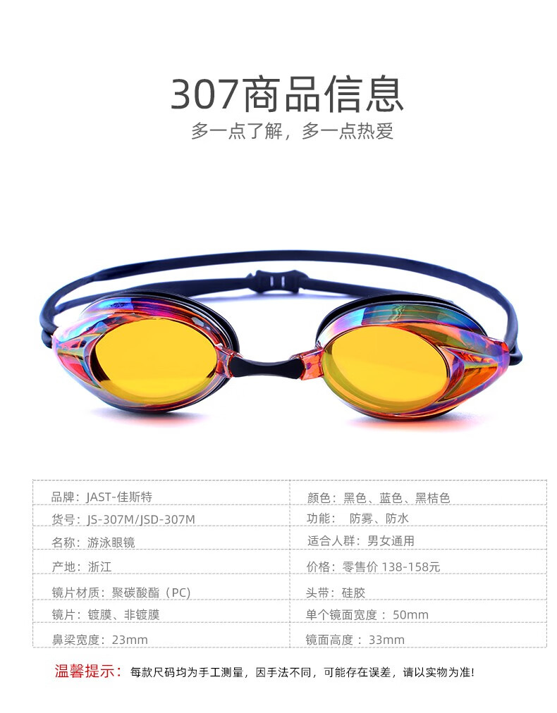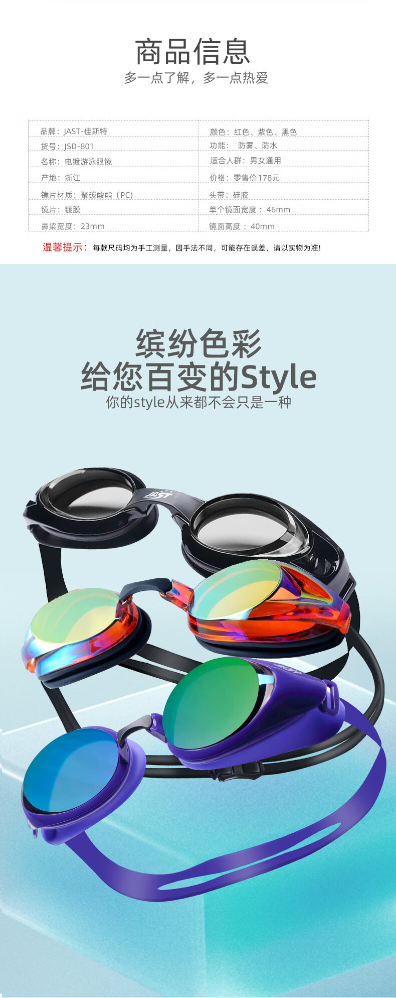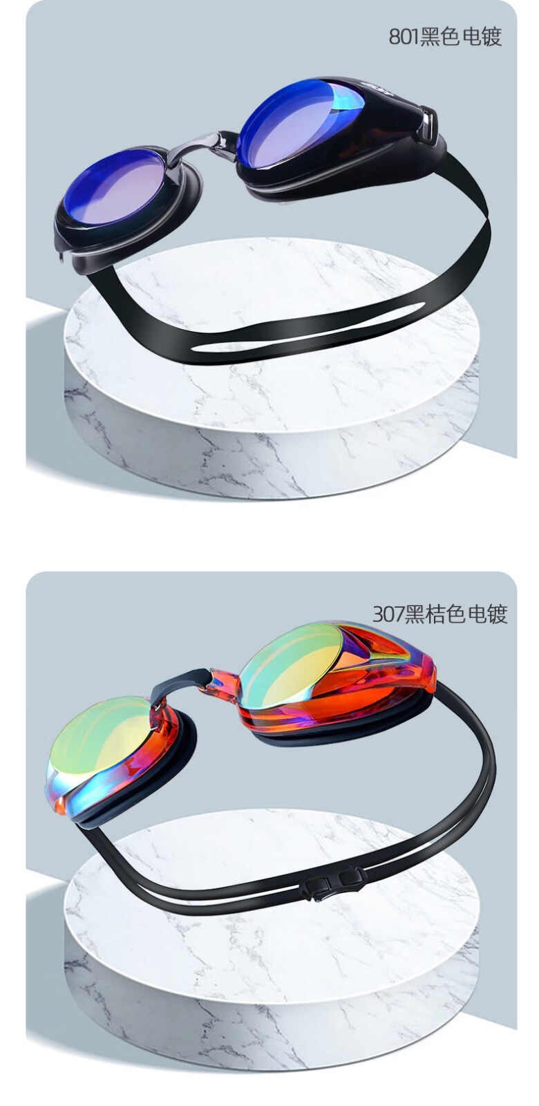 佳斯特(JAST)泳镜女士防水防雾高清游泳镜男成人游泳装备专业竞速游泳眼镜泳帽 801红色电镀泳镜+多彩泳帽
