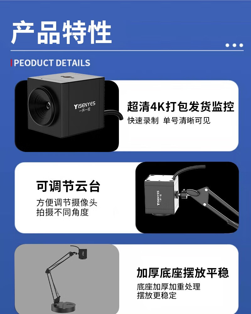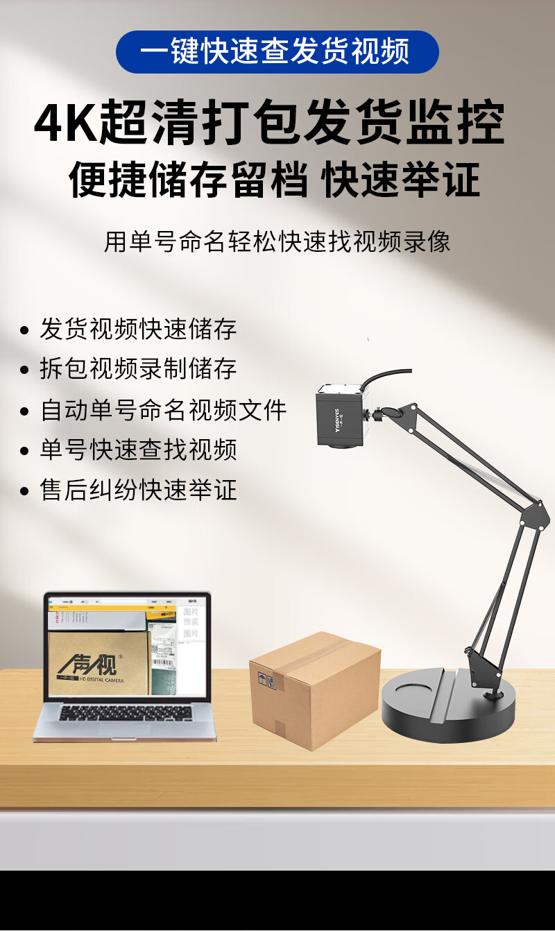 一声一视4K打包发货监控摄像头电商直播高清台式笔记本电脑USB免驱快递出库洗衣拍照录制举证摄像头 4K 拍场景【4K超清-内置灯光】X5+悬臂支架