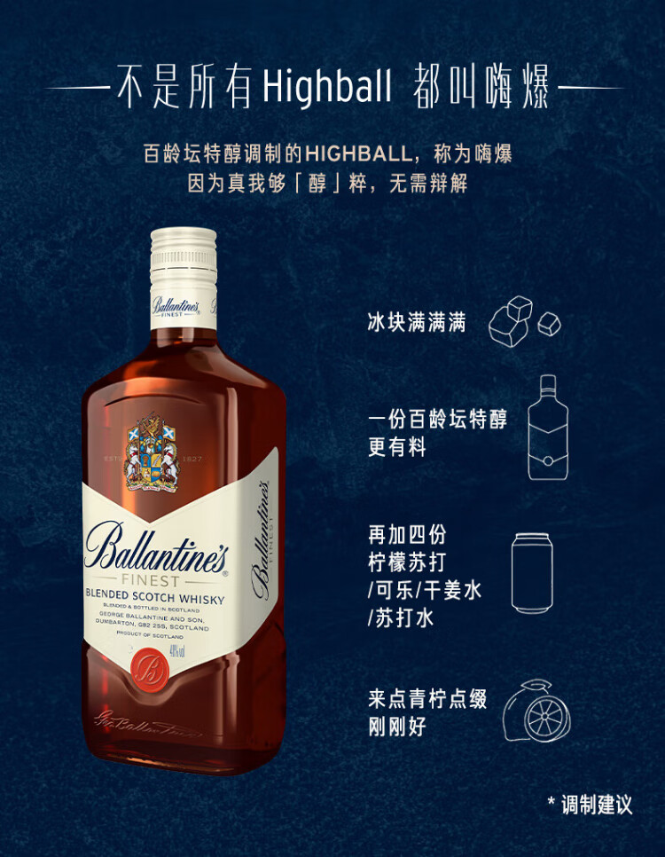 百龄坛(Ballantine’s)特醇 苏格兰调和型威士忌 500ml