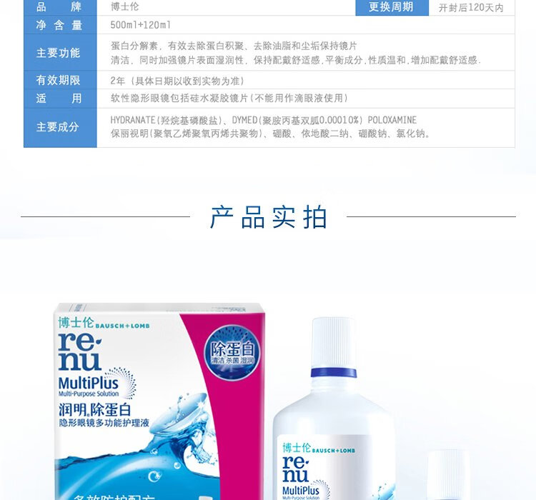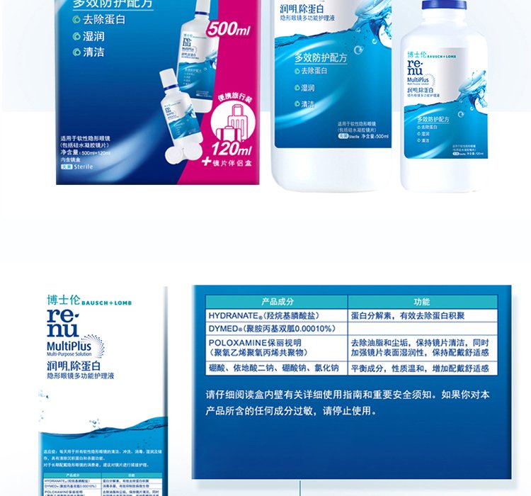 博士伦隐形眼镜水润明除蛋白护理液500+120ml