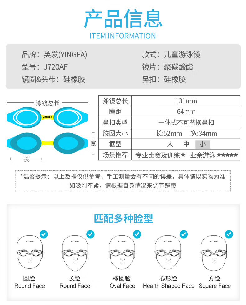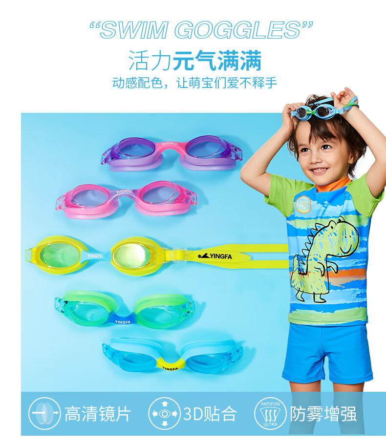 YINGFA children's swimming goggles HD flat light all-in-one swimming goggles for boys and girls primary school children professional anti-fog swimming goggles